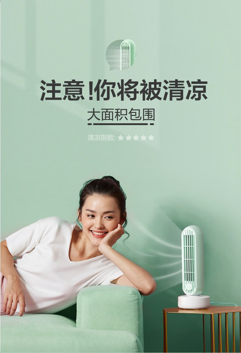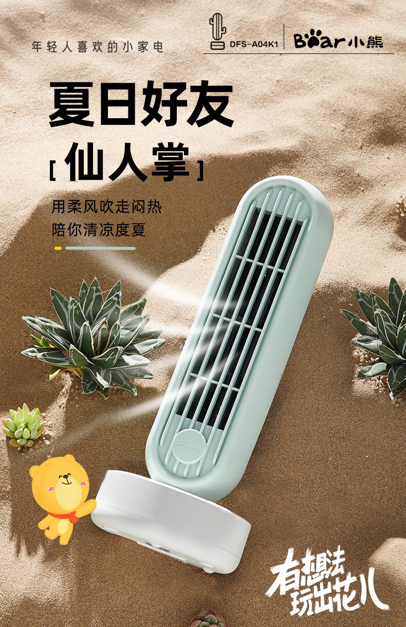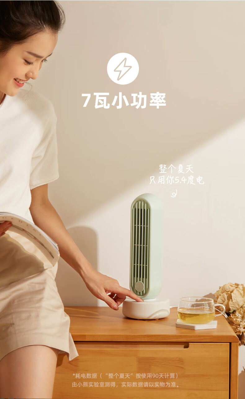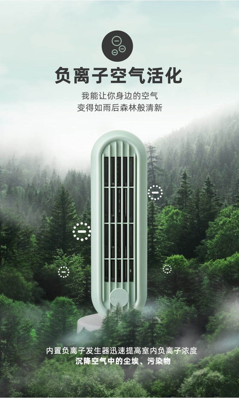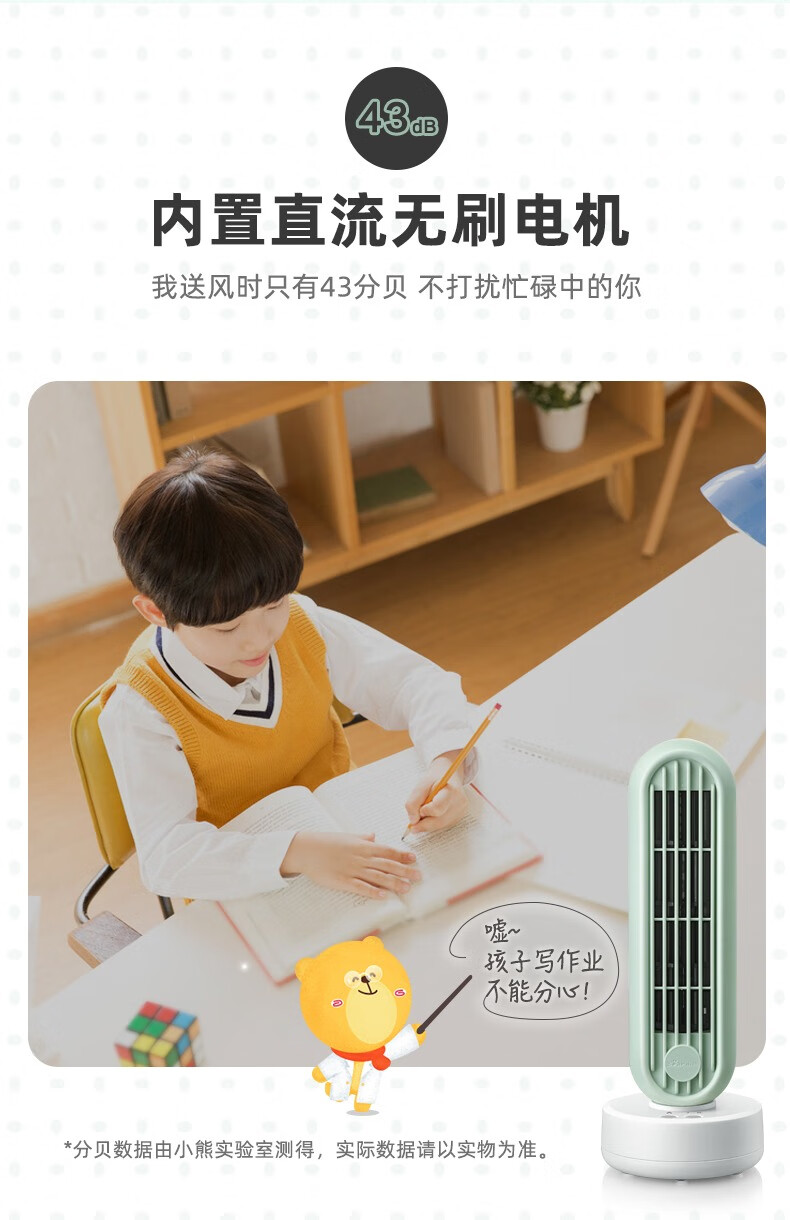 小熊(Bear) 电风扇 桌面电风扇迷你小塔扇办公室小风扇桌面宿舍台式小型风扇小型塔式无叶大风力低分贝电扇 升级负离子款-活化空气清新绿DFS-A04K1