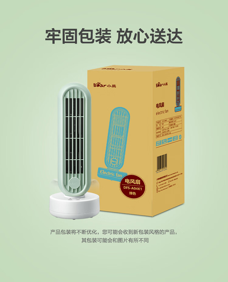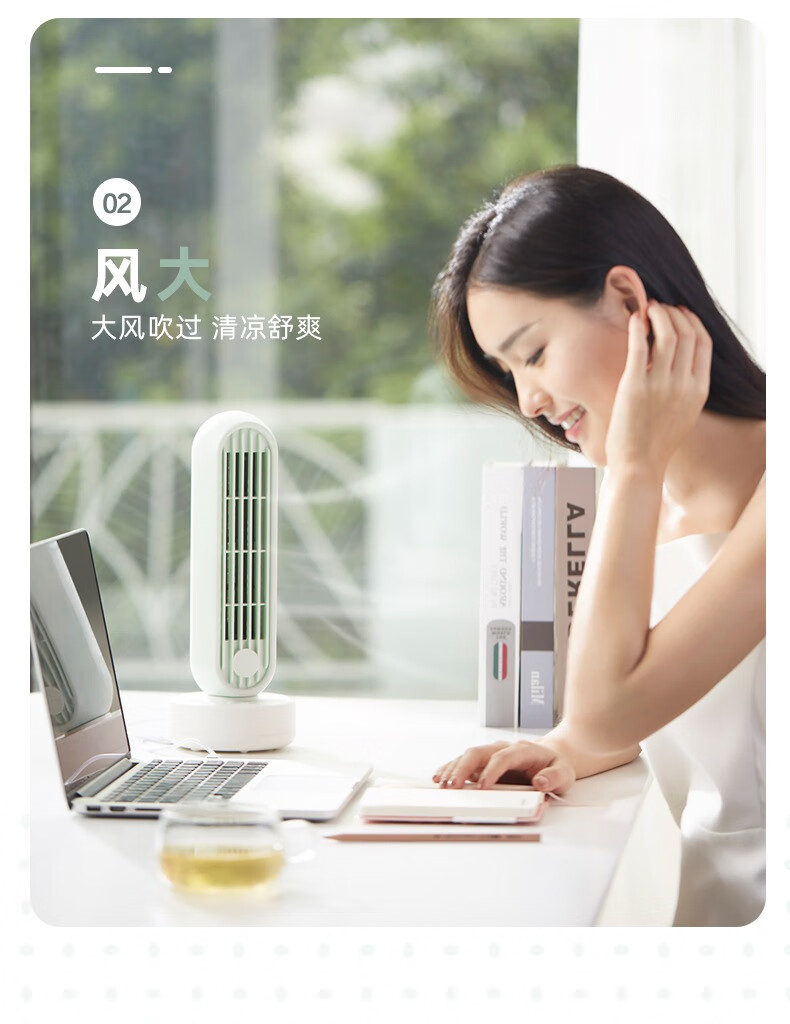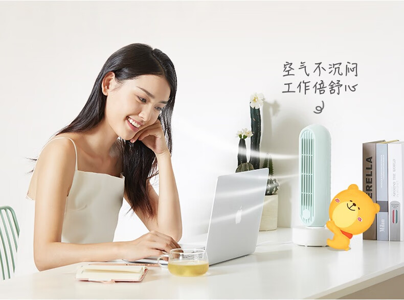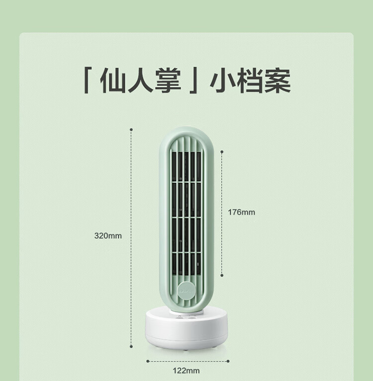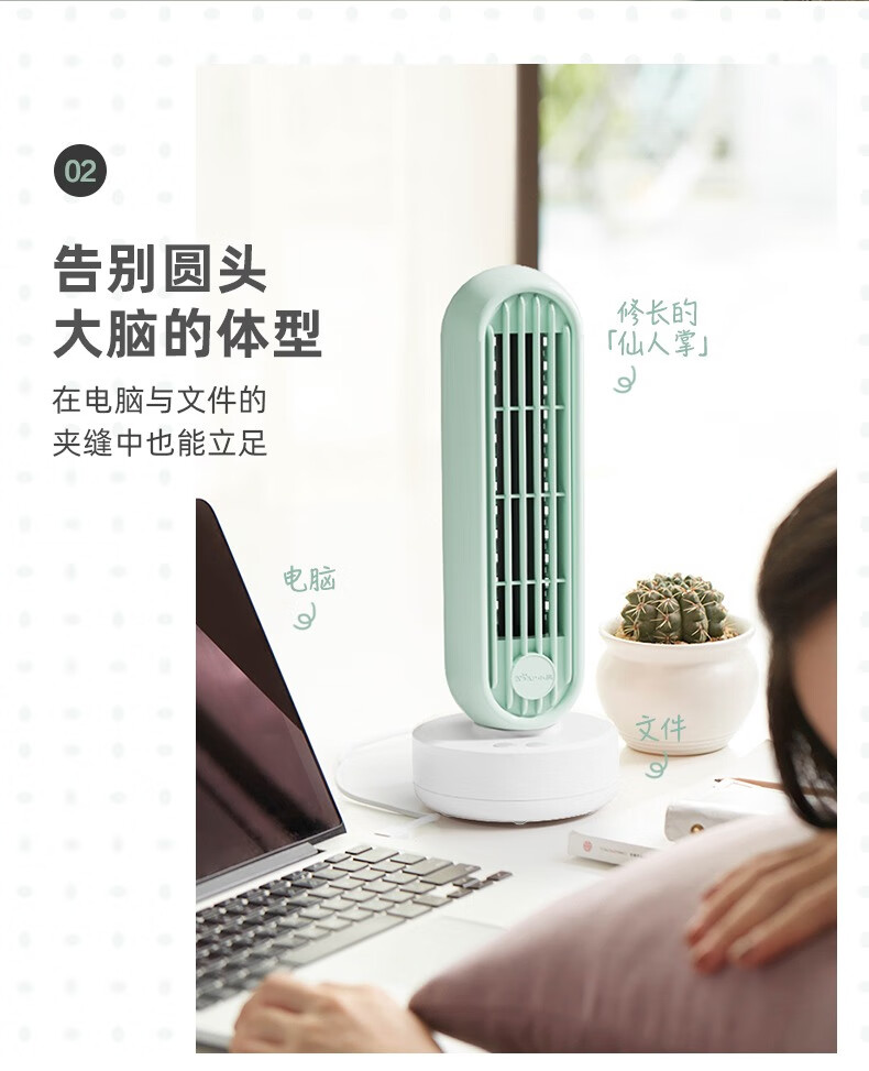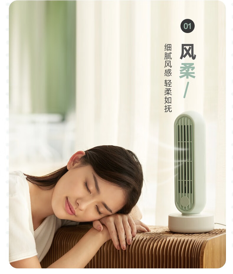 小熊(Bear) 电风扇 桌面电风扇迷你小塔扇办公室小风扇桌面宿舍台式小型风扇小型塔式无叶大风力低分贝电扇 升级负离子款-活化空气清新绿DFS-A04K1