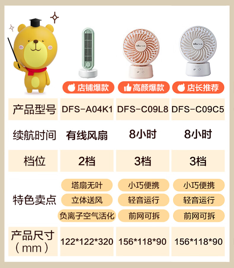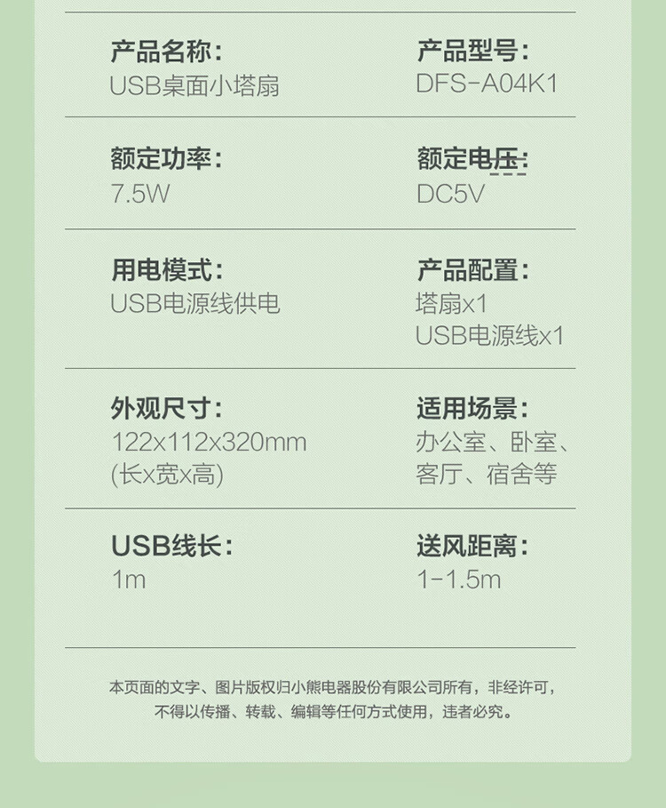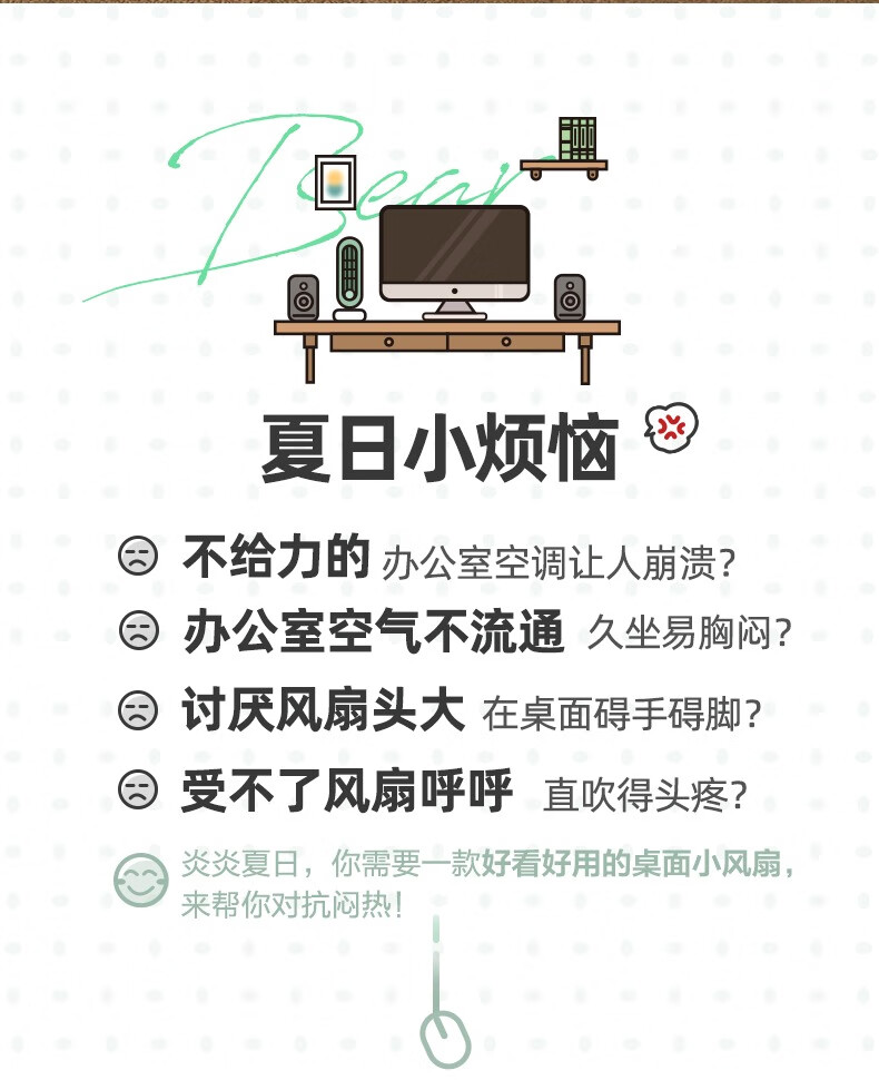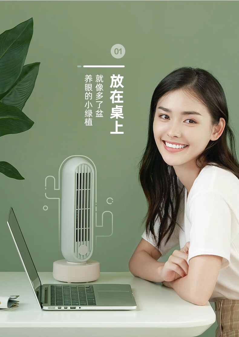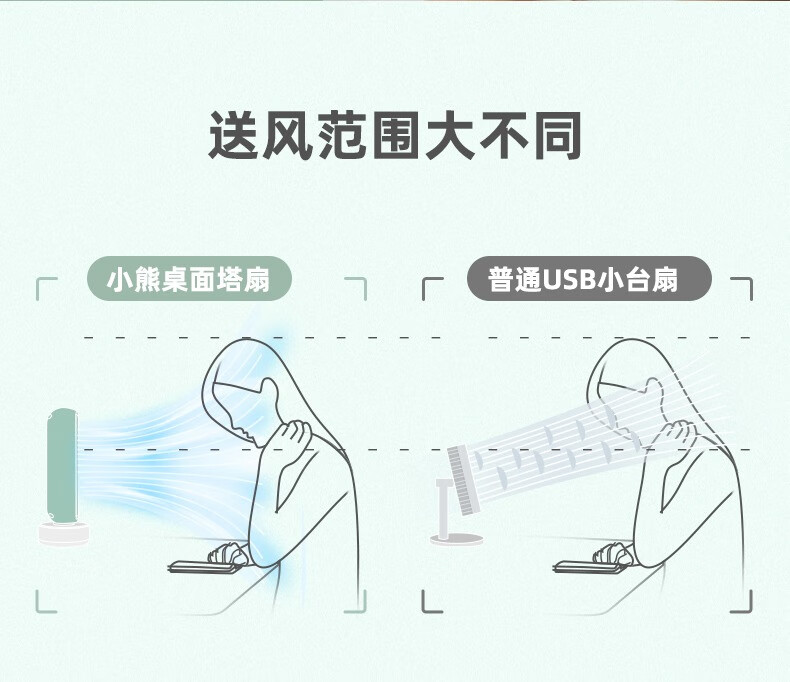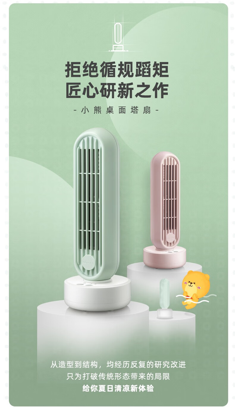小熊(Bear) 电风扇 桌面电风扇迷你小塔扇办公室小风扇桌面宿舍台式小型风扇小型塔式无叶大风力低分贝电扇 升级负离子款-活化空气清新绿DFS-A04K1