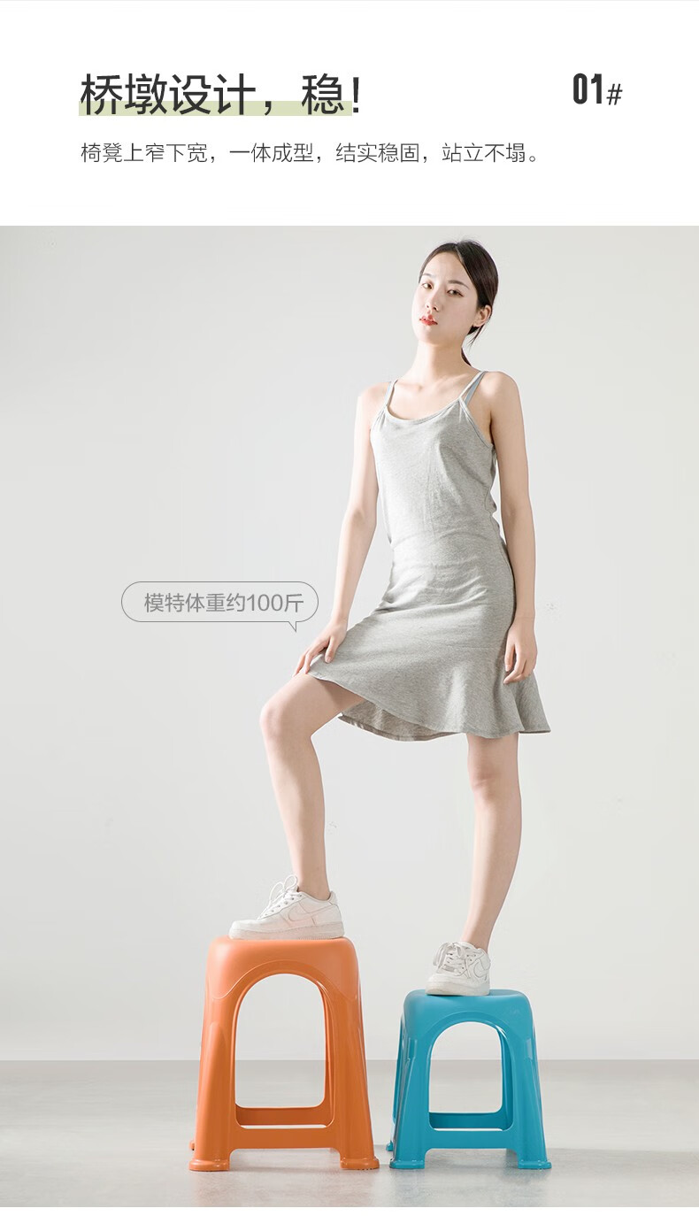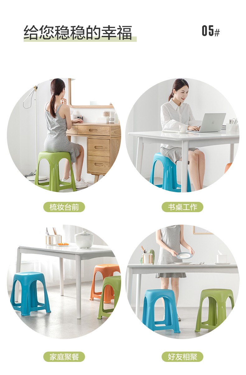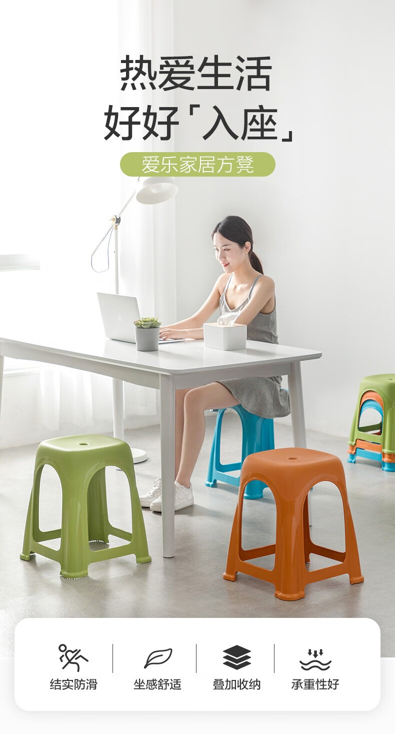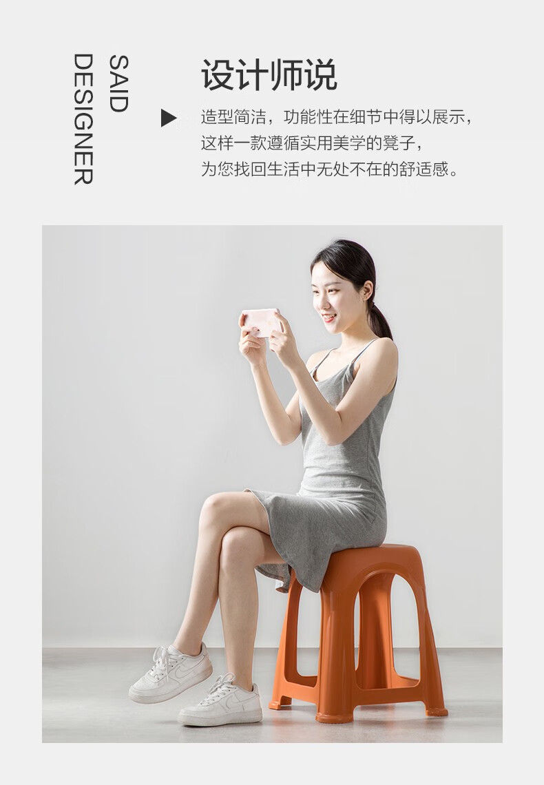 茶花塑料凳子高脚凳加厚家用客厅简约防滑餐桌凳折叠便携板凳4个 橘色(爱乐中凳33*33*34cm) 【4只装】