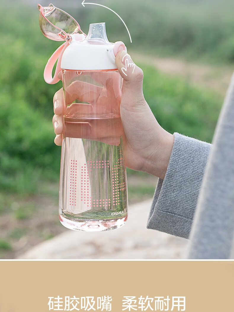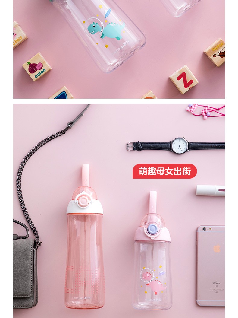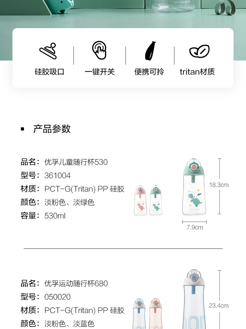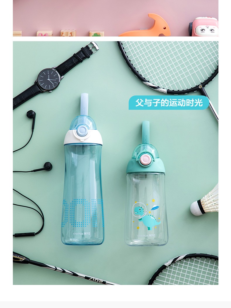 茶花塑料水杯运动旅行便携简约水壶学生弹盖优孚随行杯 【蓝色050020】680ml 1个装