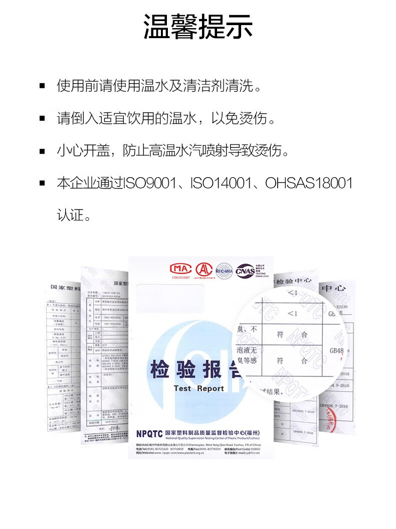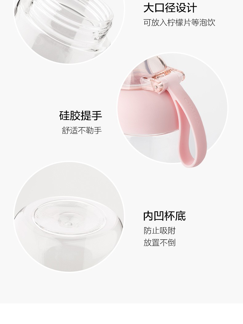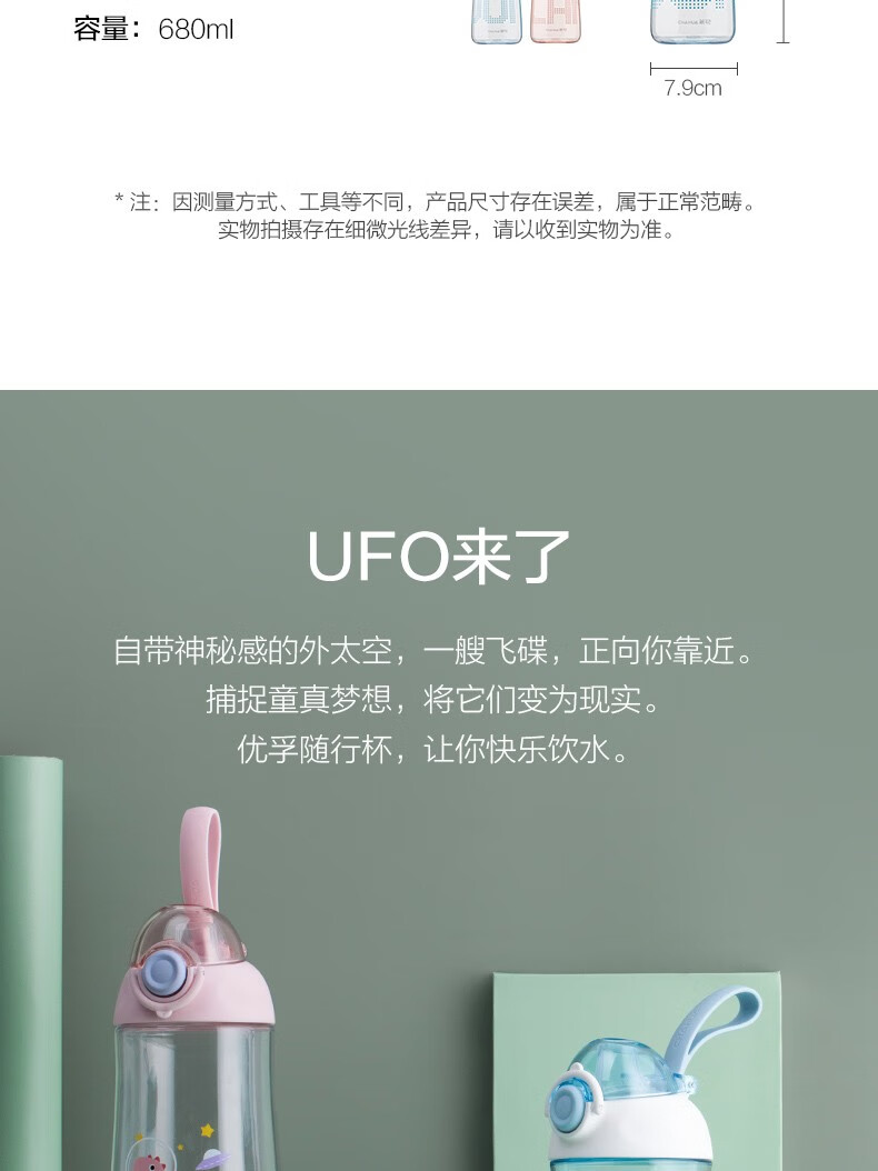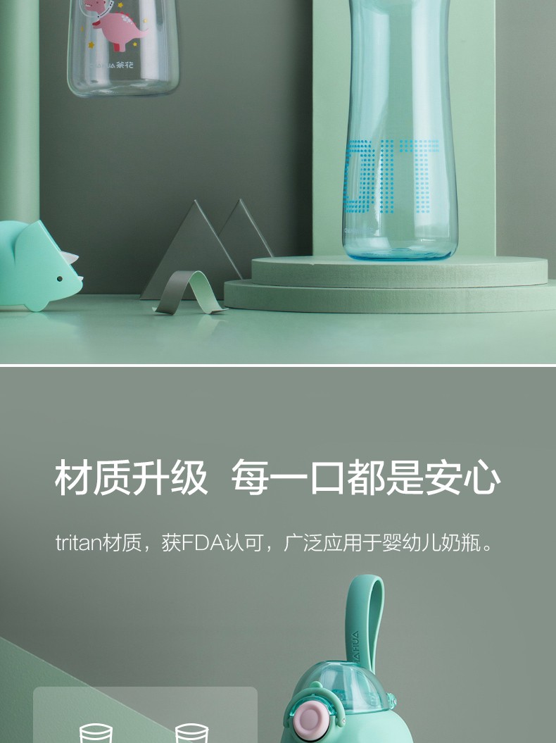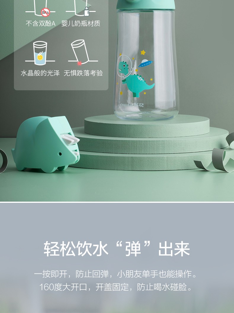 茶花塑料水杯运动旅行便携简约水壶学生弹盖优孚随行杯 【蓝色050020】680ml 1个装