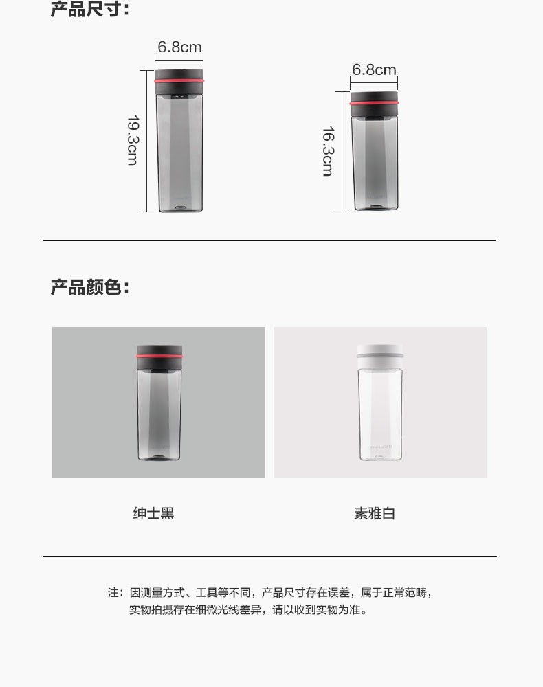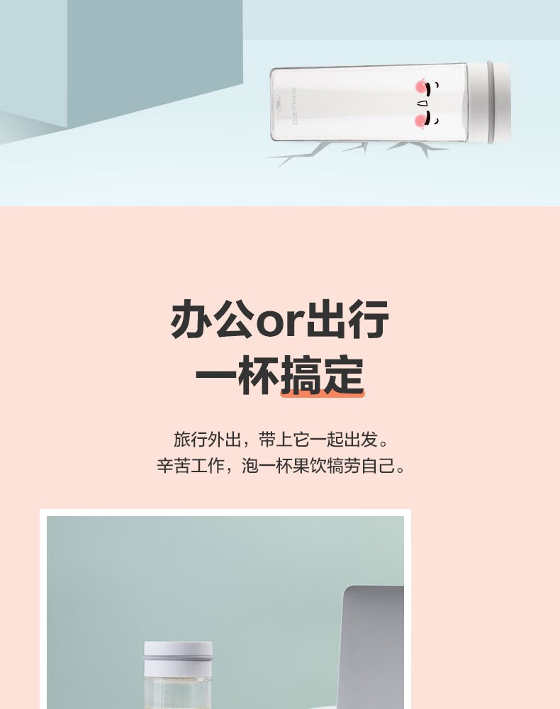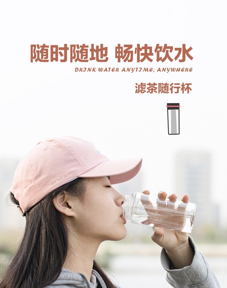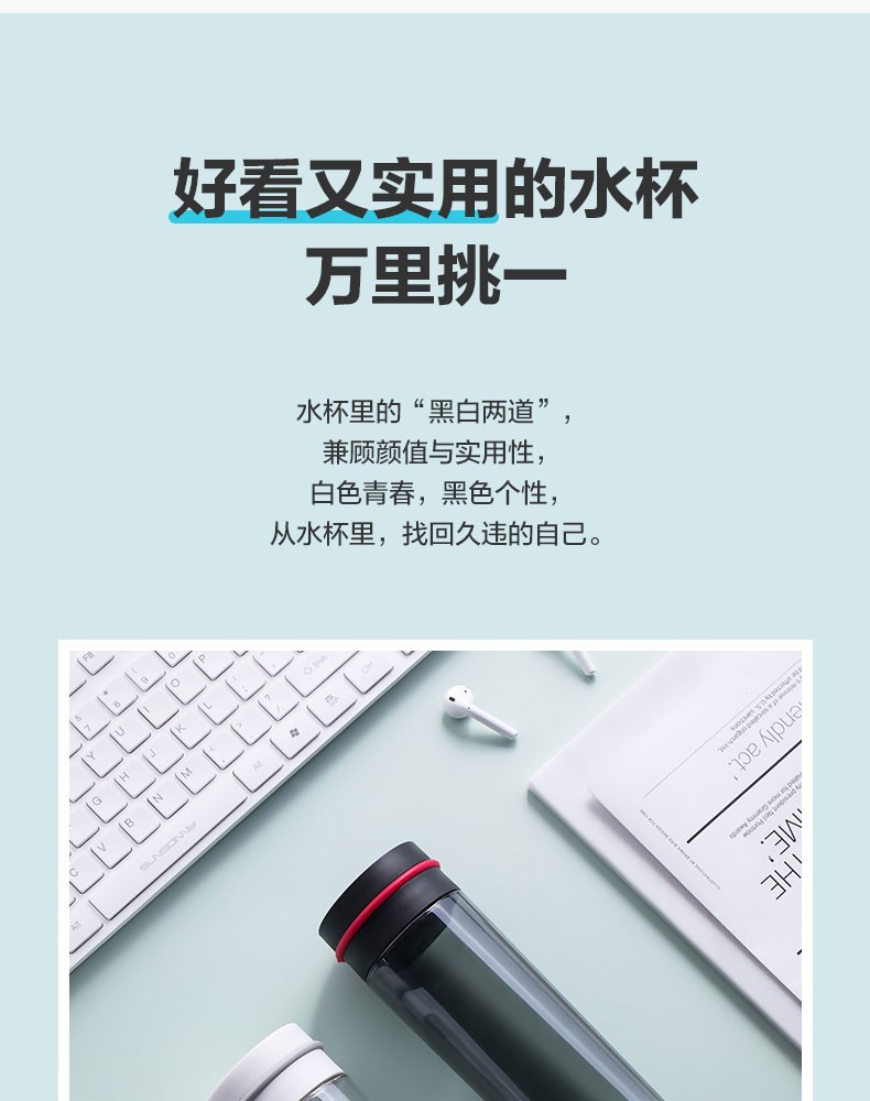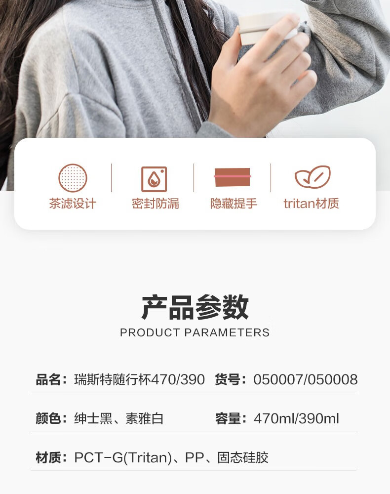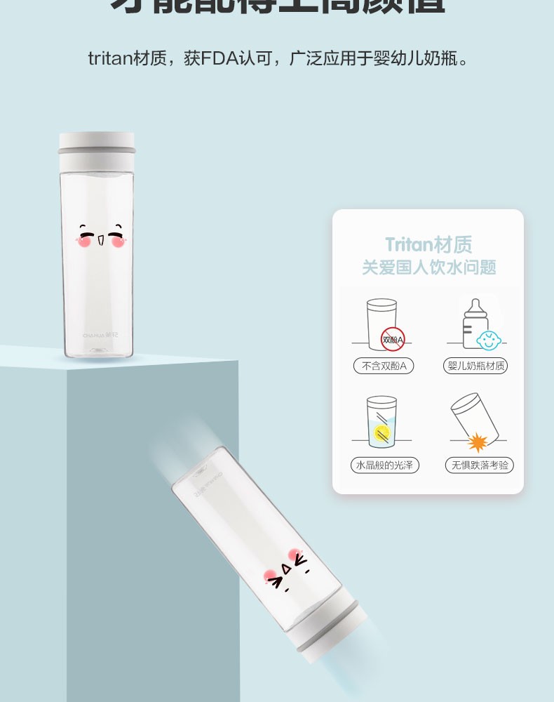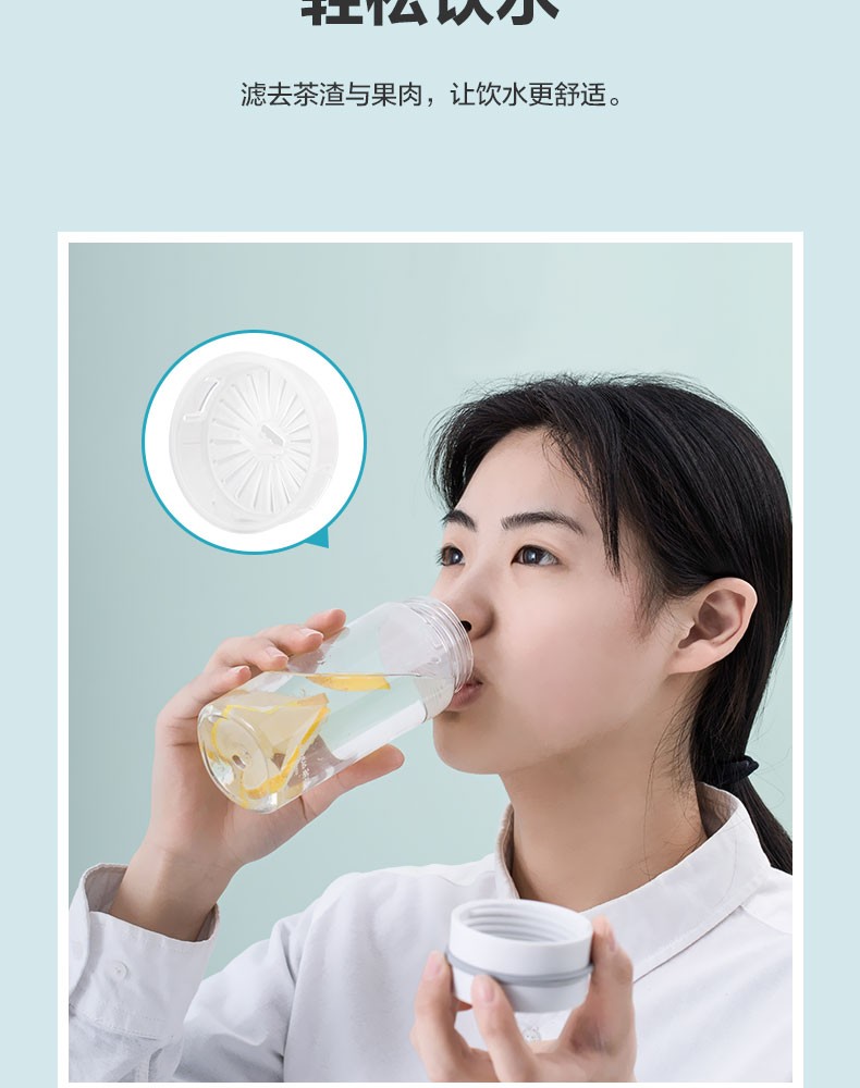 茶花(CHAHUA) 茶花水杯塑料茶杯运动旅行便携茶水分离杯瑞斯特随行杯 470ml【白色050007】 1个装