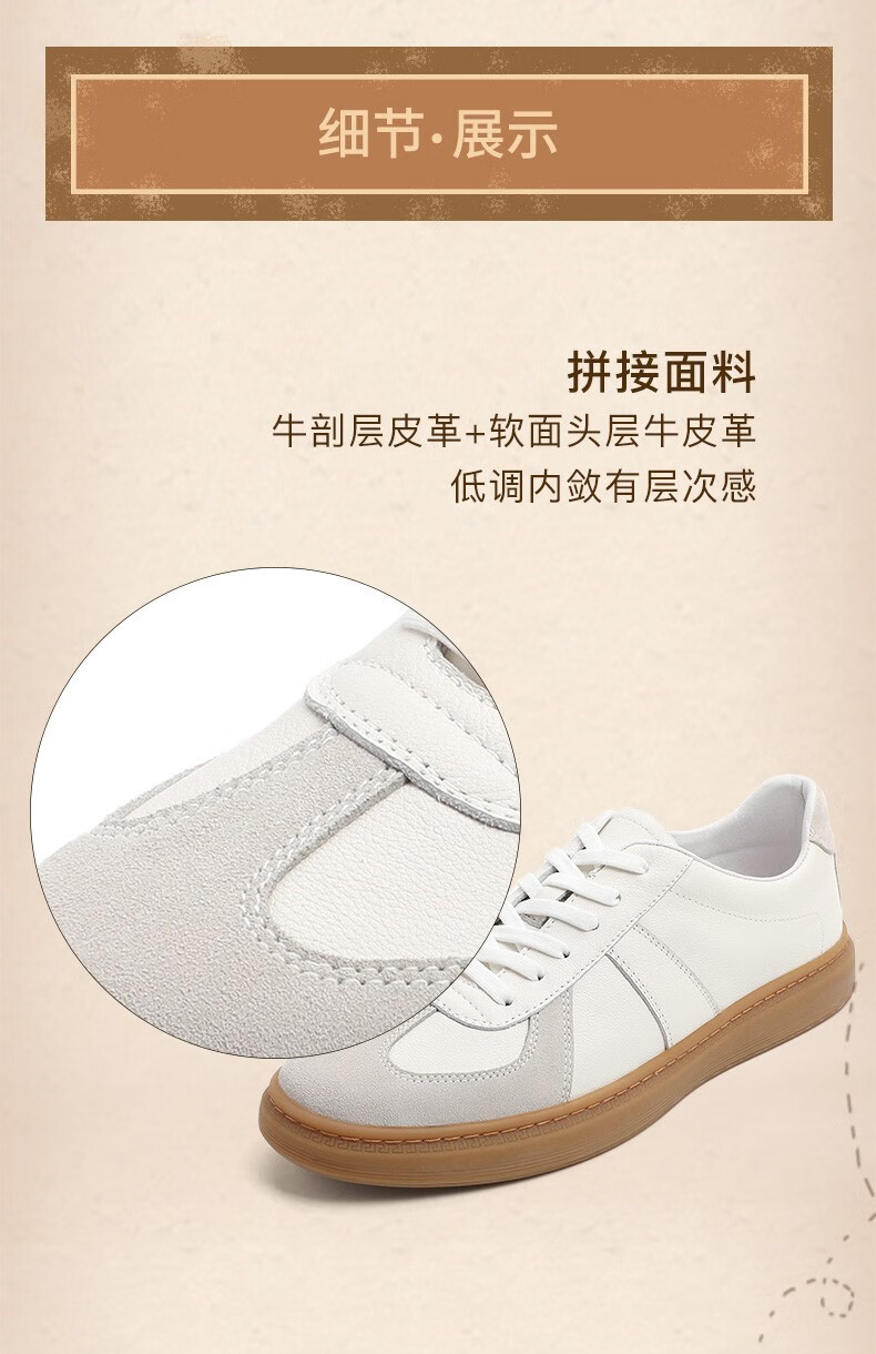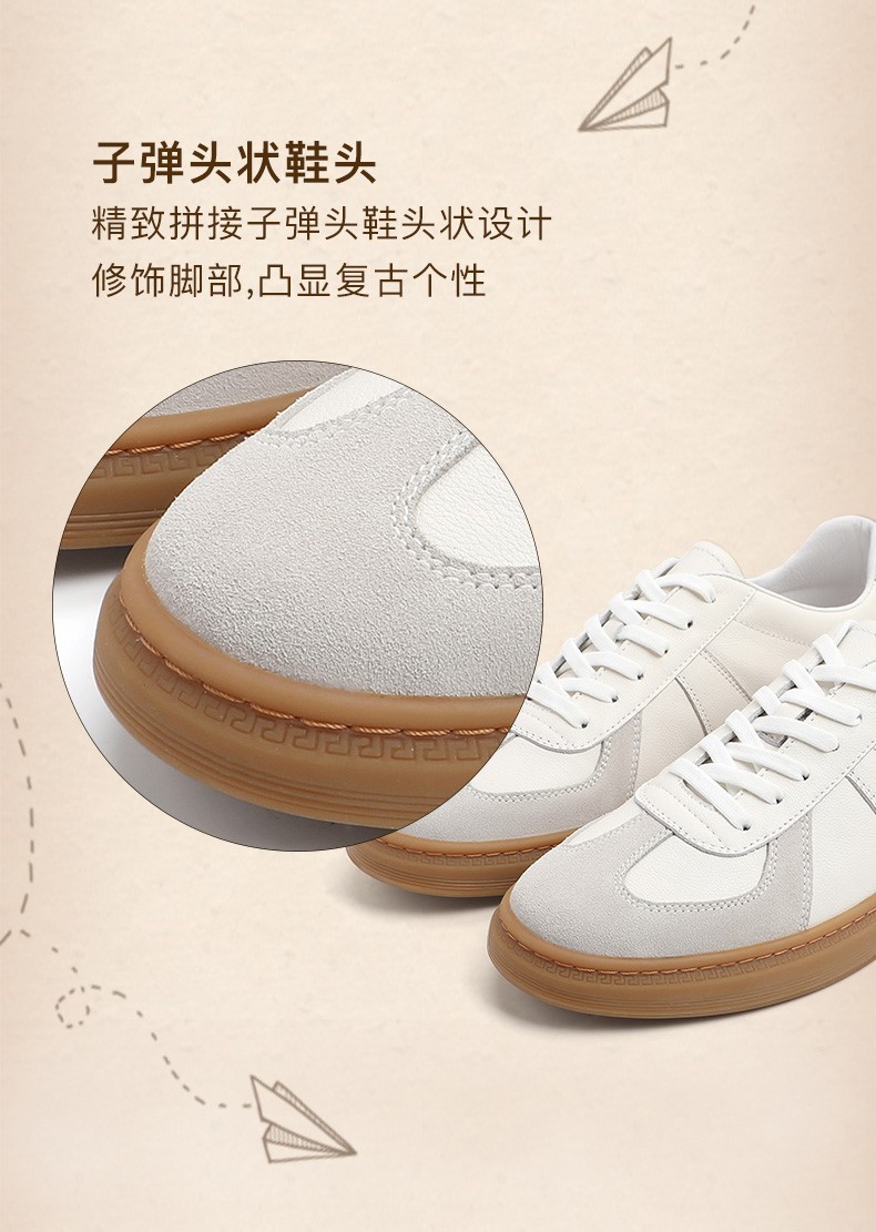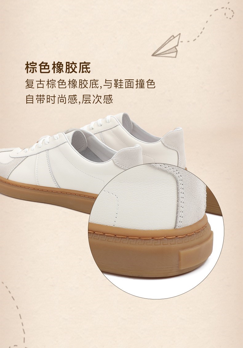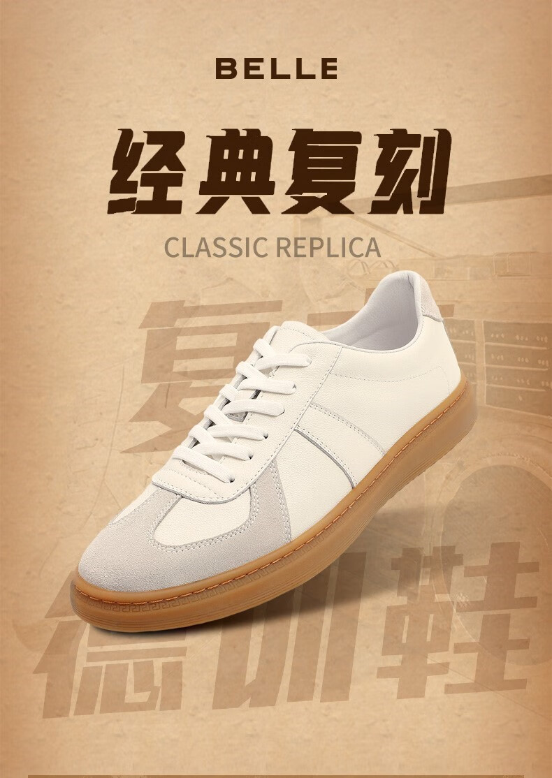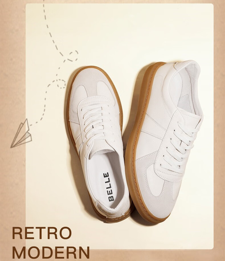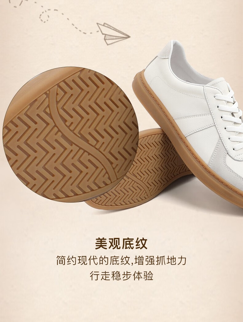 百丽透气简约舒适日常街头复古德训鞋休闲小白鞋男5CM0 白色 41