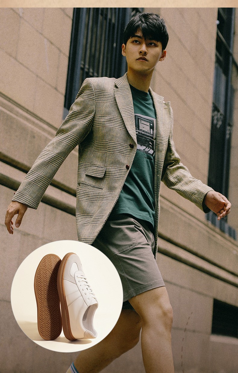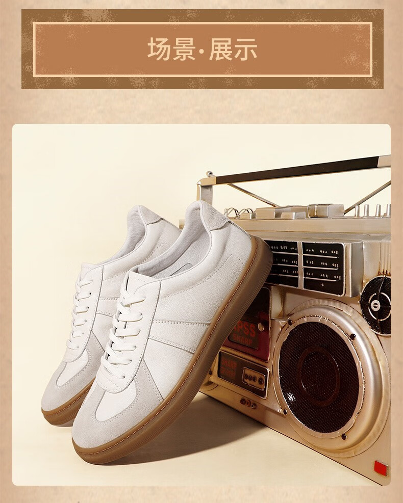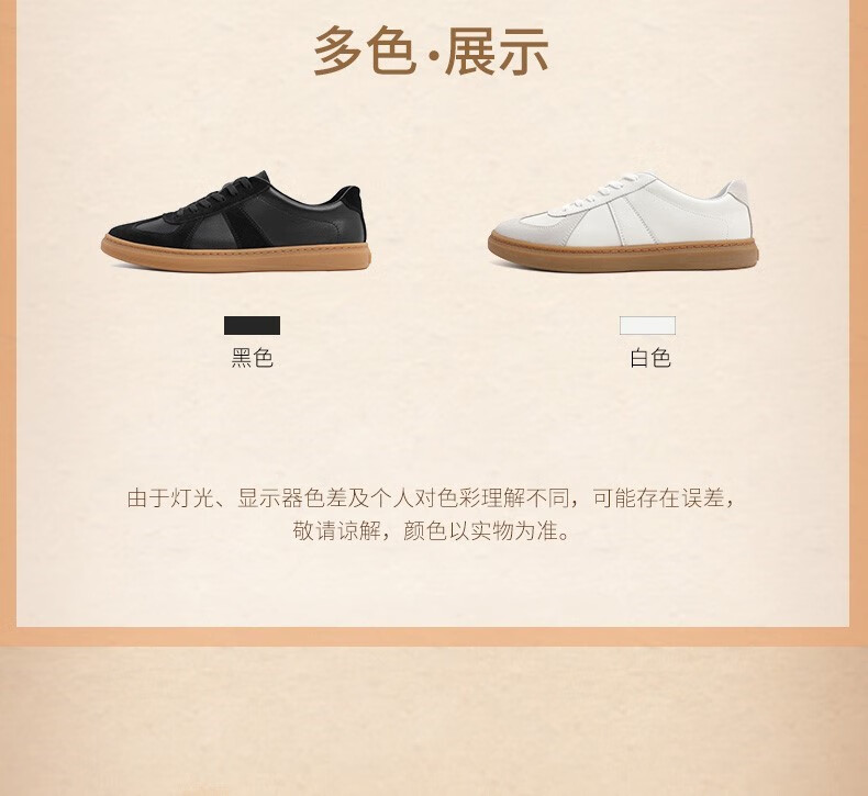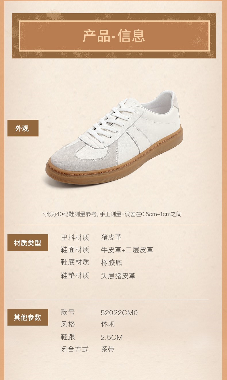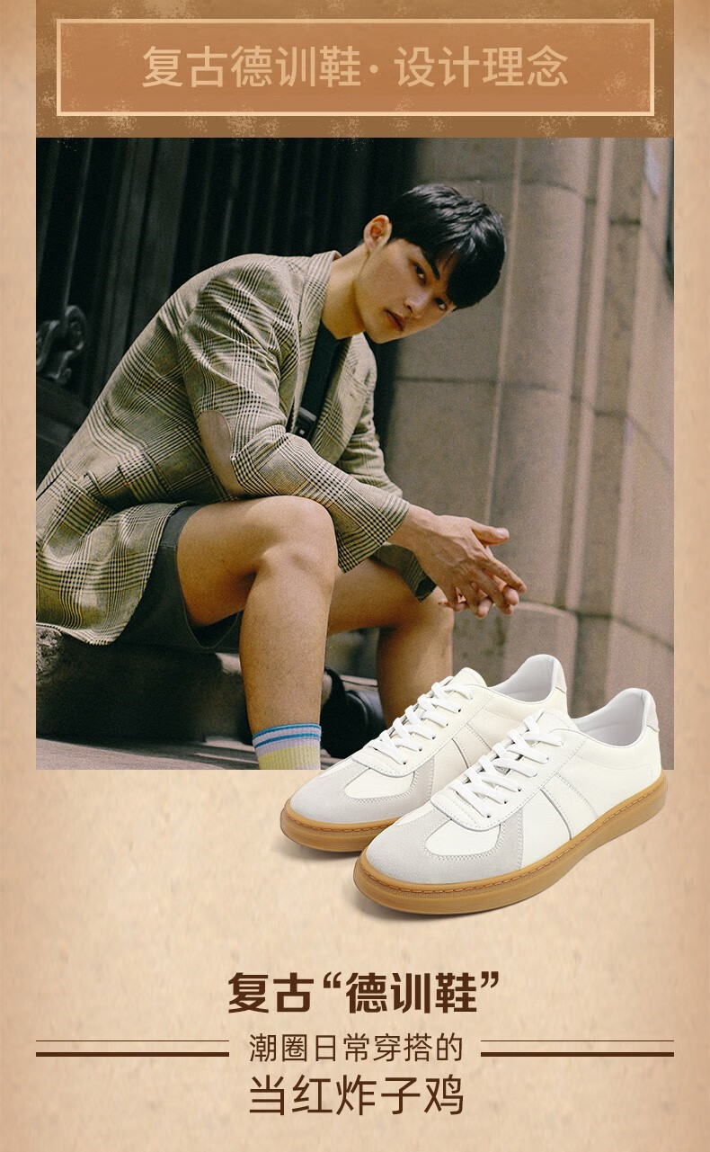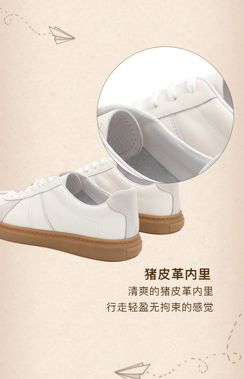 百丽透气简约舒适日常街头复古德训鞋休闲小白鞋男5CM0 白色 41