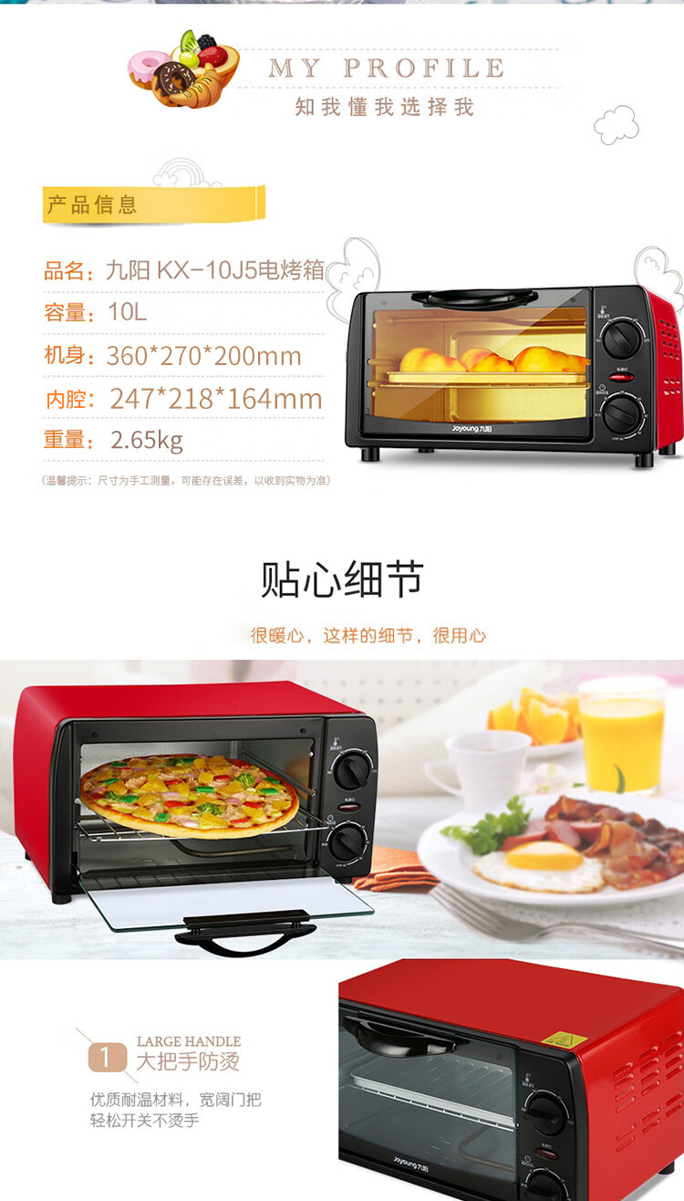 九阳(Joyoung)电烤箱家用多功能烘焙 定时控温 迷你10L巧容量 小烤箱 KX-10J5(升级)