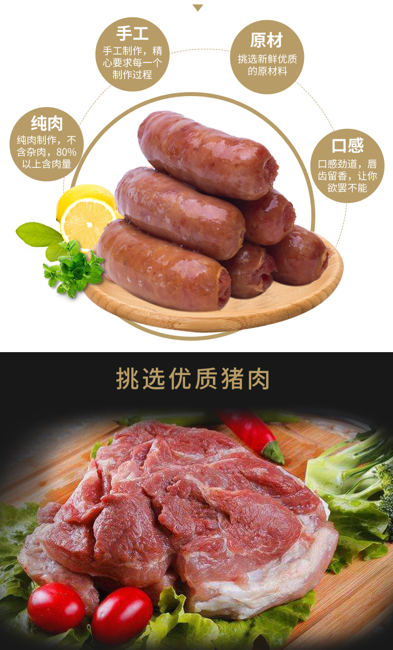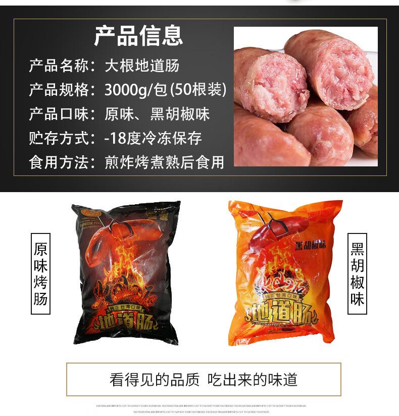 御味香(ywx)御味地道肠火山石烤肠批发台湾烤肠热狗香肠纯肉脆骨肠装60g*50根 原味烤肠60g*50根