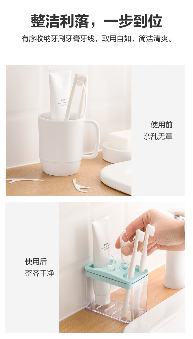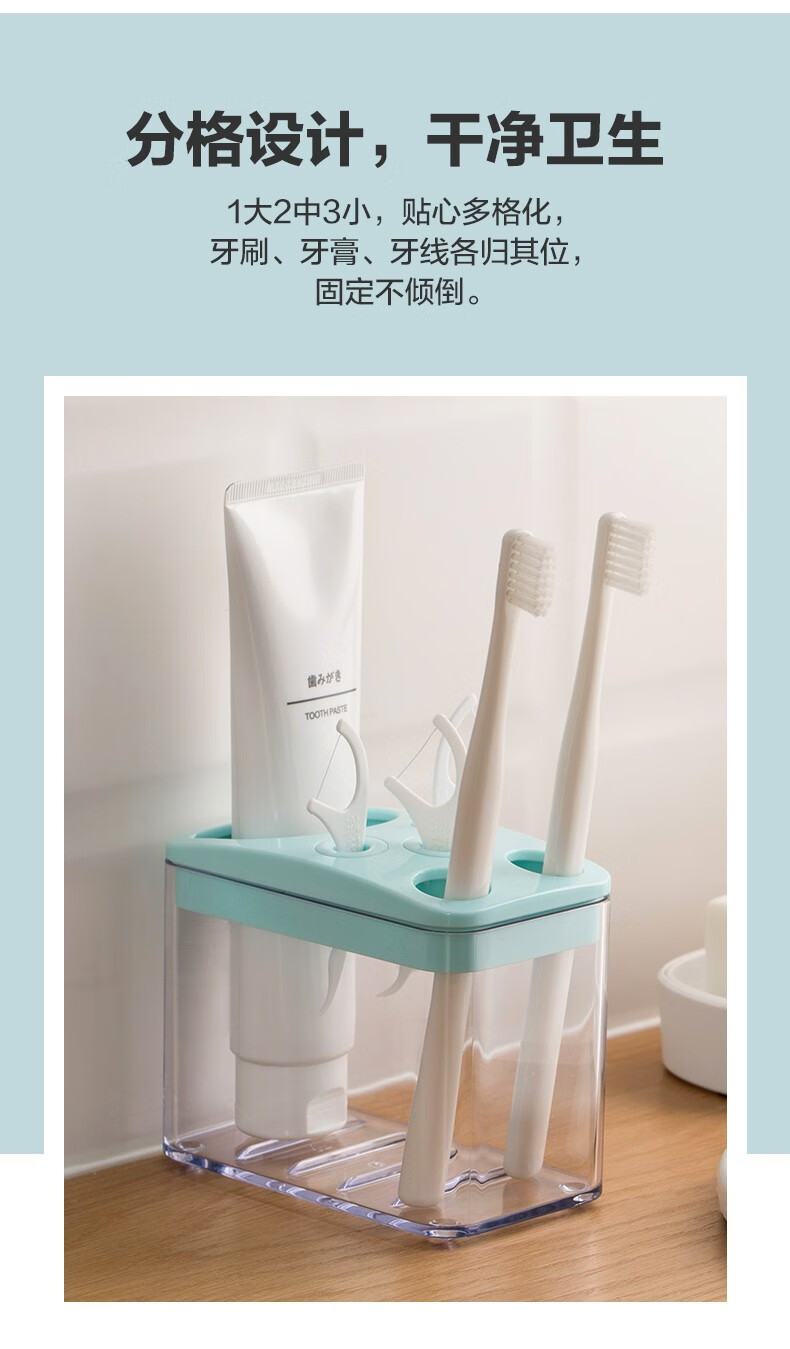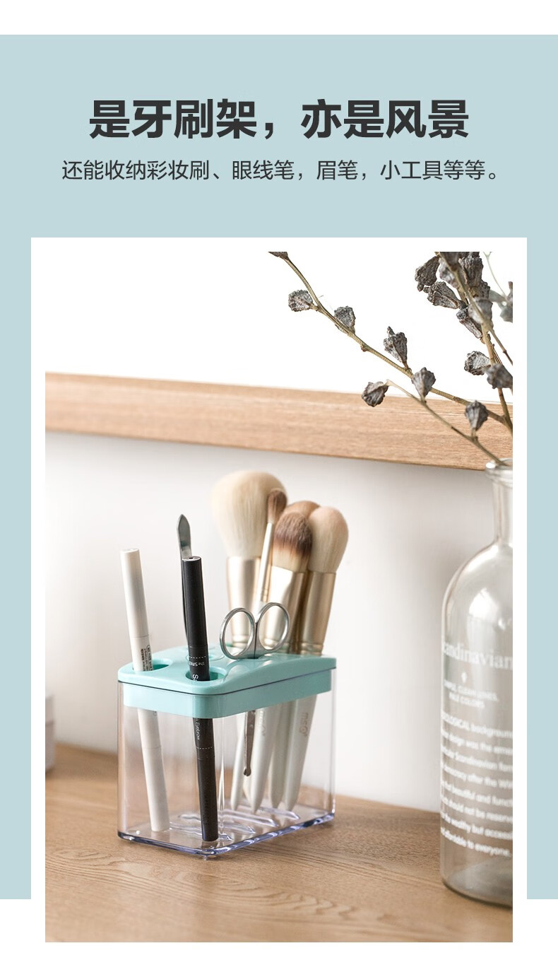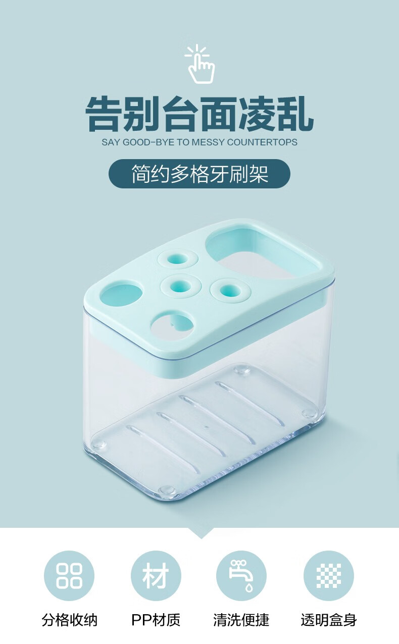 茶花牙刷置物架牙具牙膏家用卫生间收纳架情侣款双人牙刷架摆台式 时尚多用牙刷架