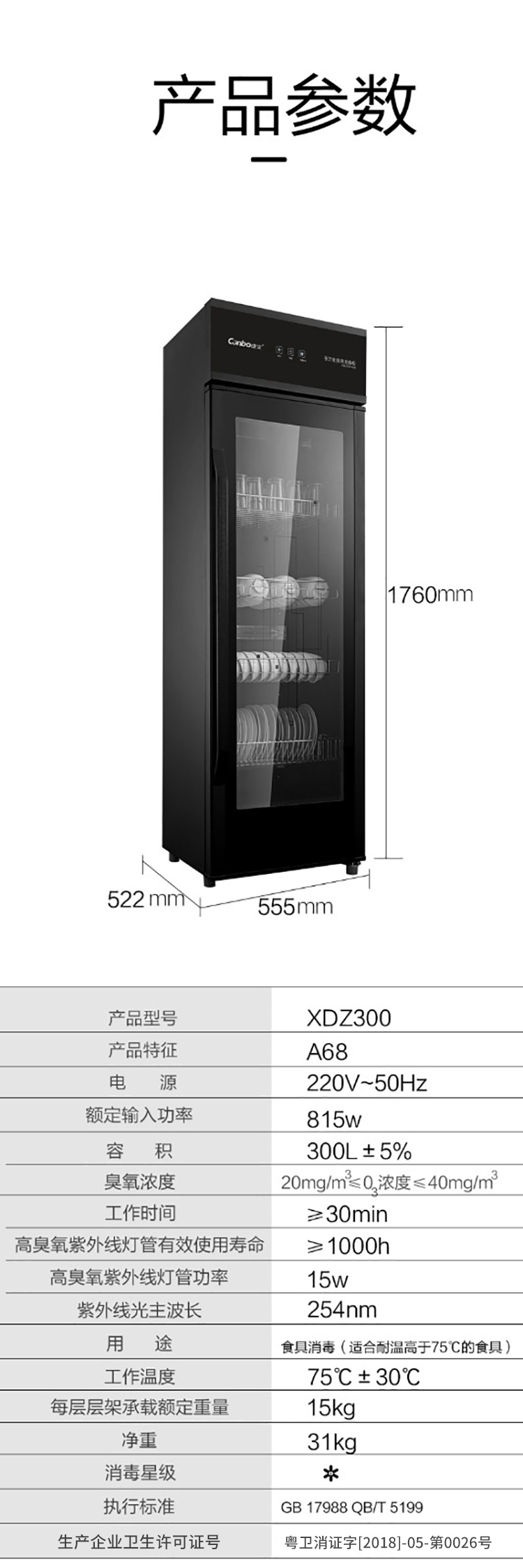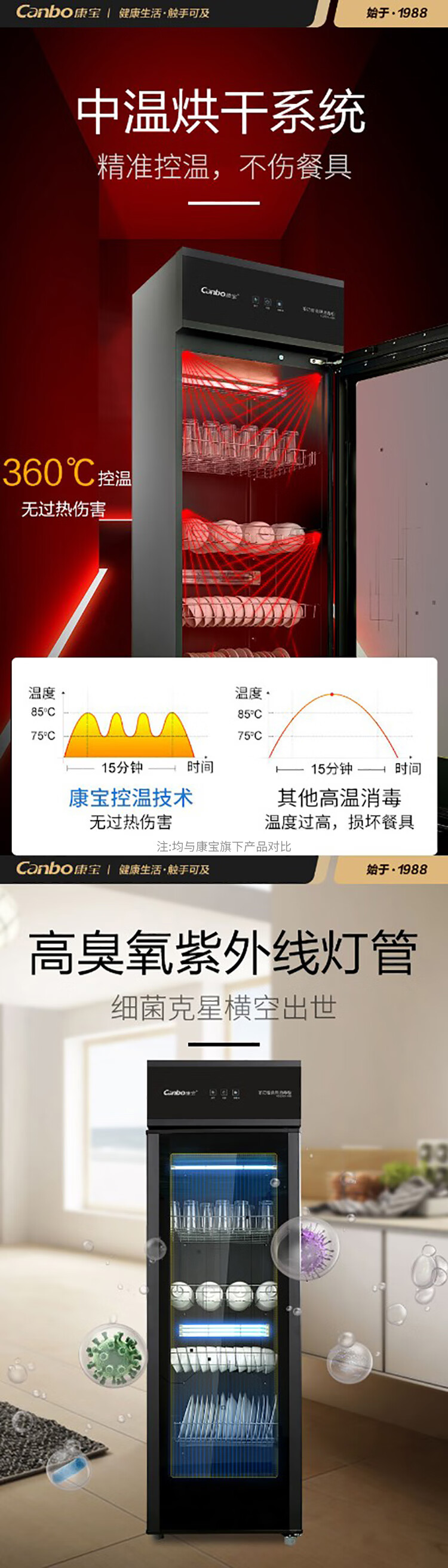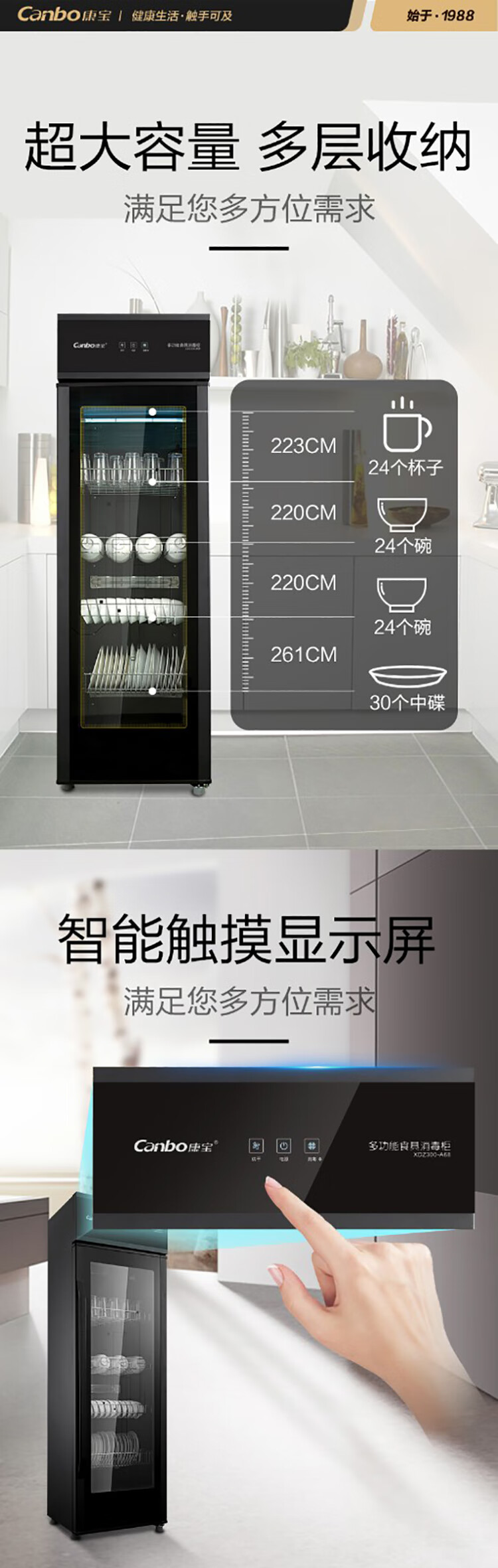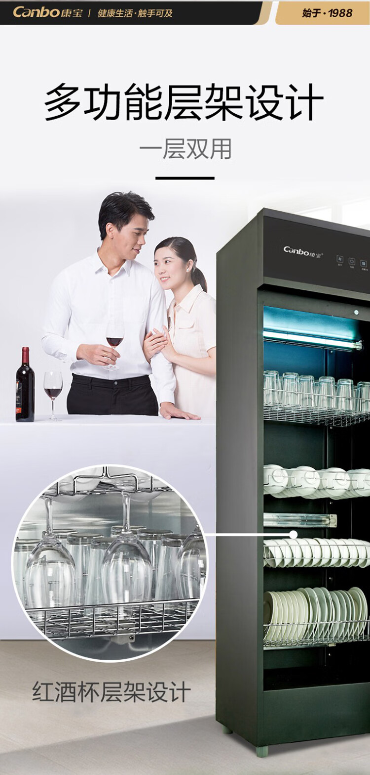 康宝(Canbo)消毒柜 立式大容量 家用商用 厨房碗筷柜 餐厅食堂单门碗柜 紫外线杀菌GPR380A-6(8)/XDZ300-A68