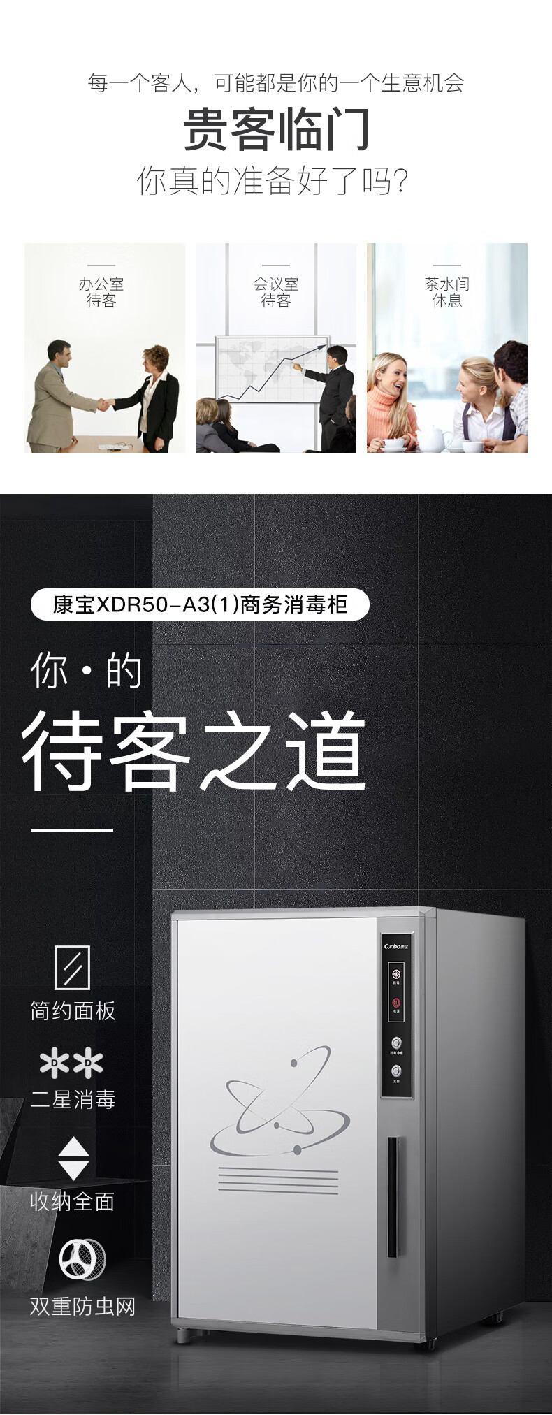 康宝(Canbo)消毒柜家用 小型台式壁挂式 厨房消毒碗柜 单门 茶杯柜茶水间办公会议室商用消毒柜二星高温 XDR50-A31X【50升】壁挂台式两用