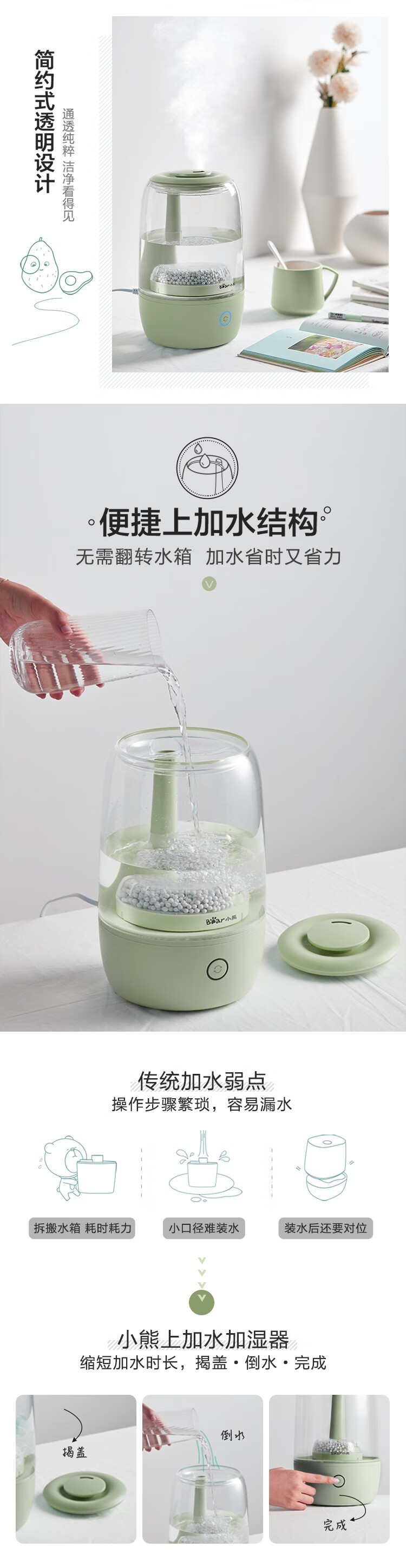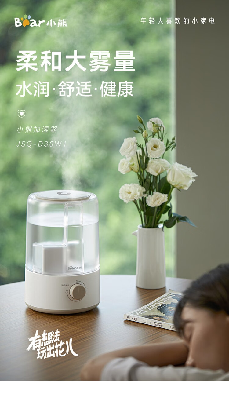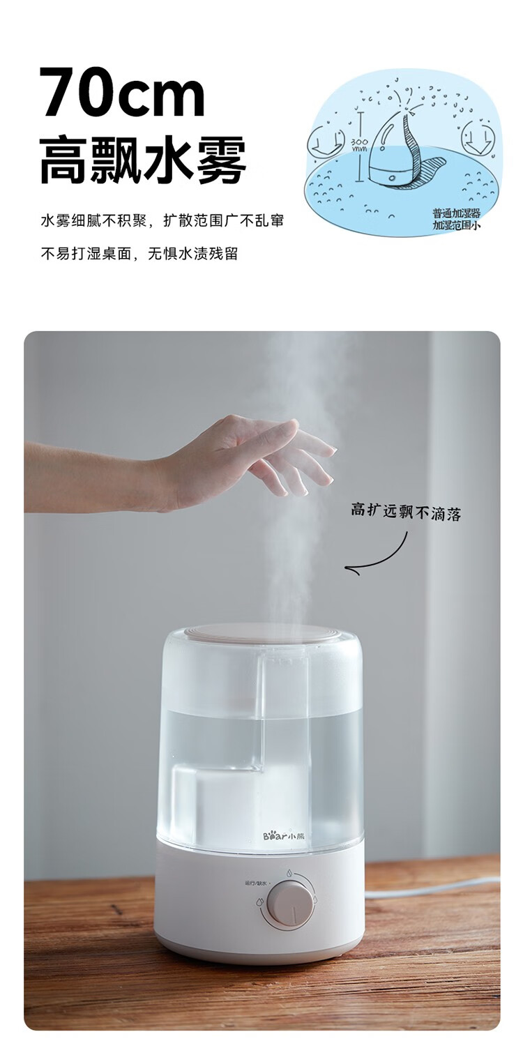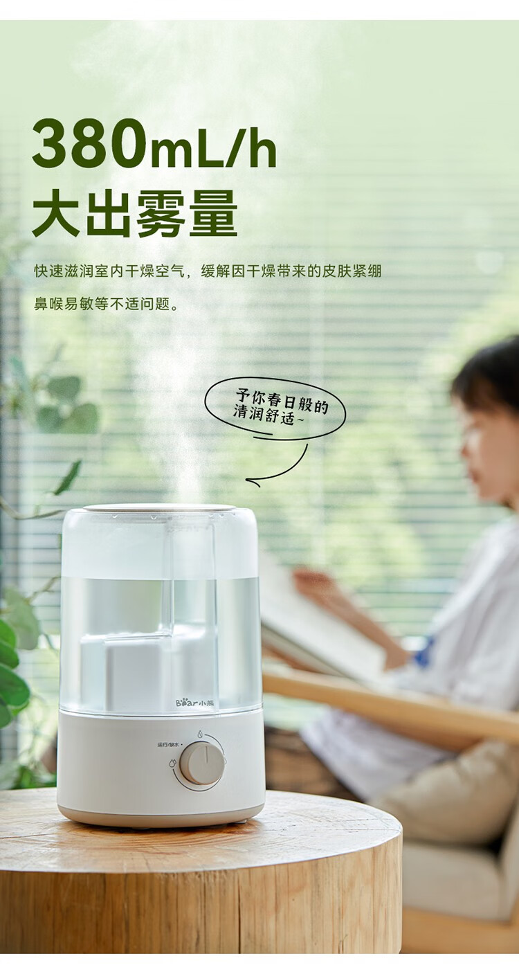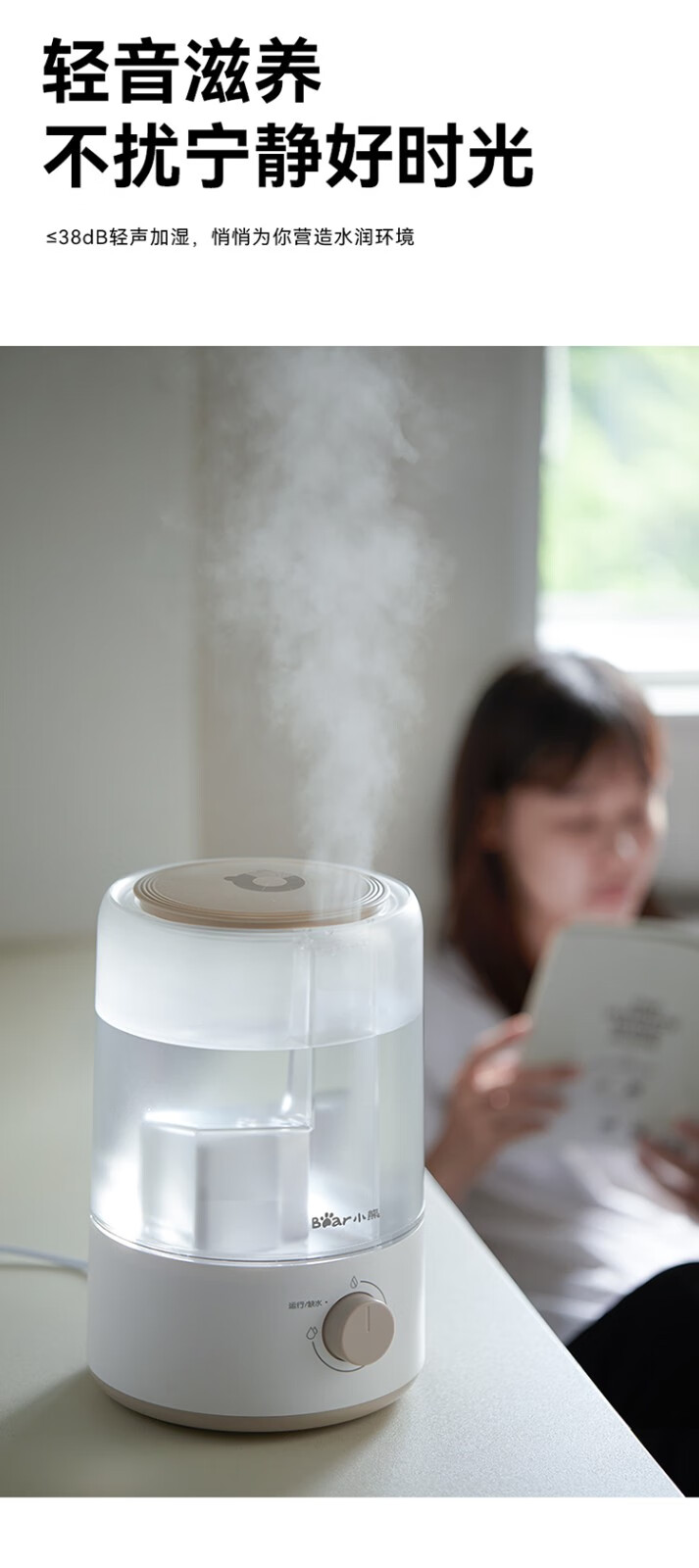 小熊(Bear) 加湿器家用空气加湿机卧室3L迷你增湿机桌面办公加湿器低噪大雾量JSQ-D30W1 【JSQ-D30W1】更润更健康