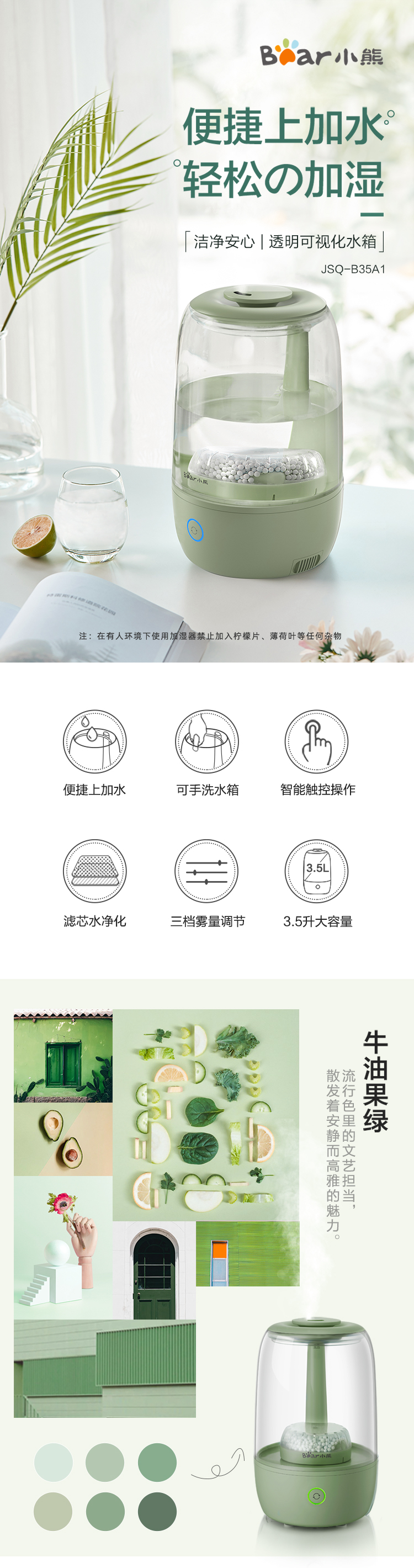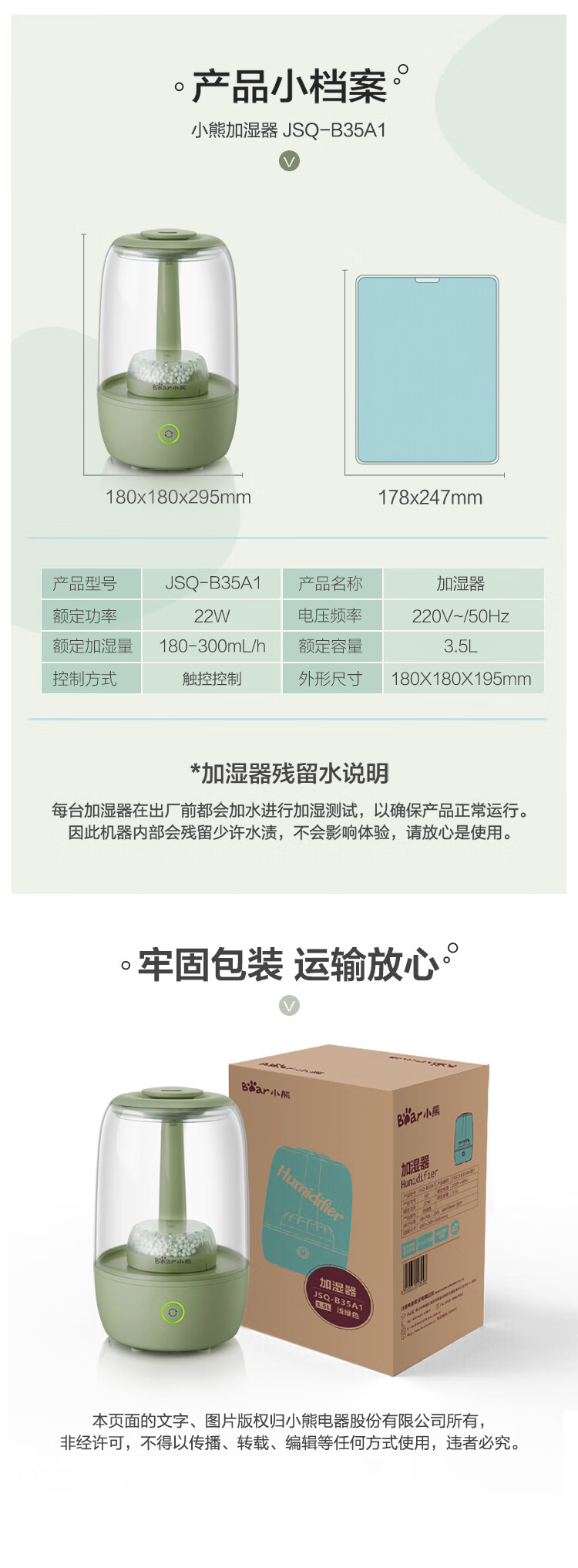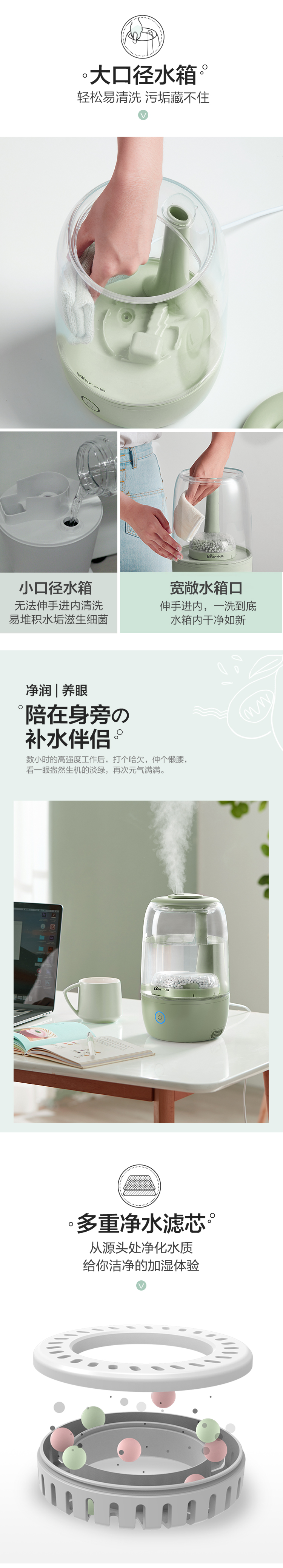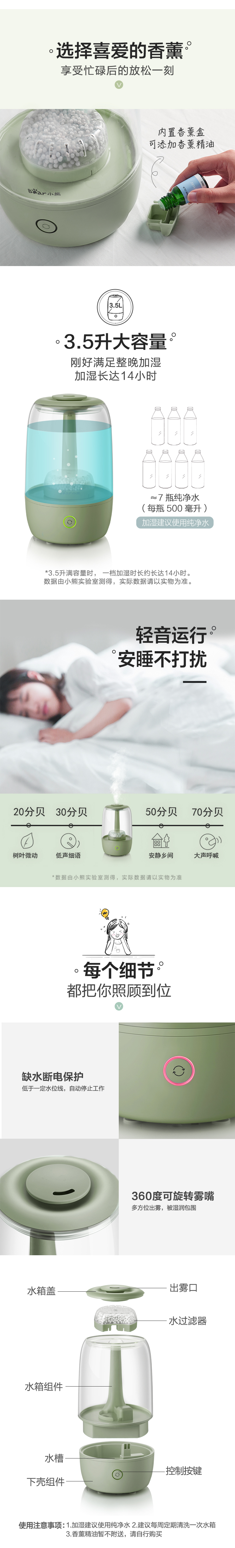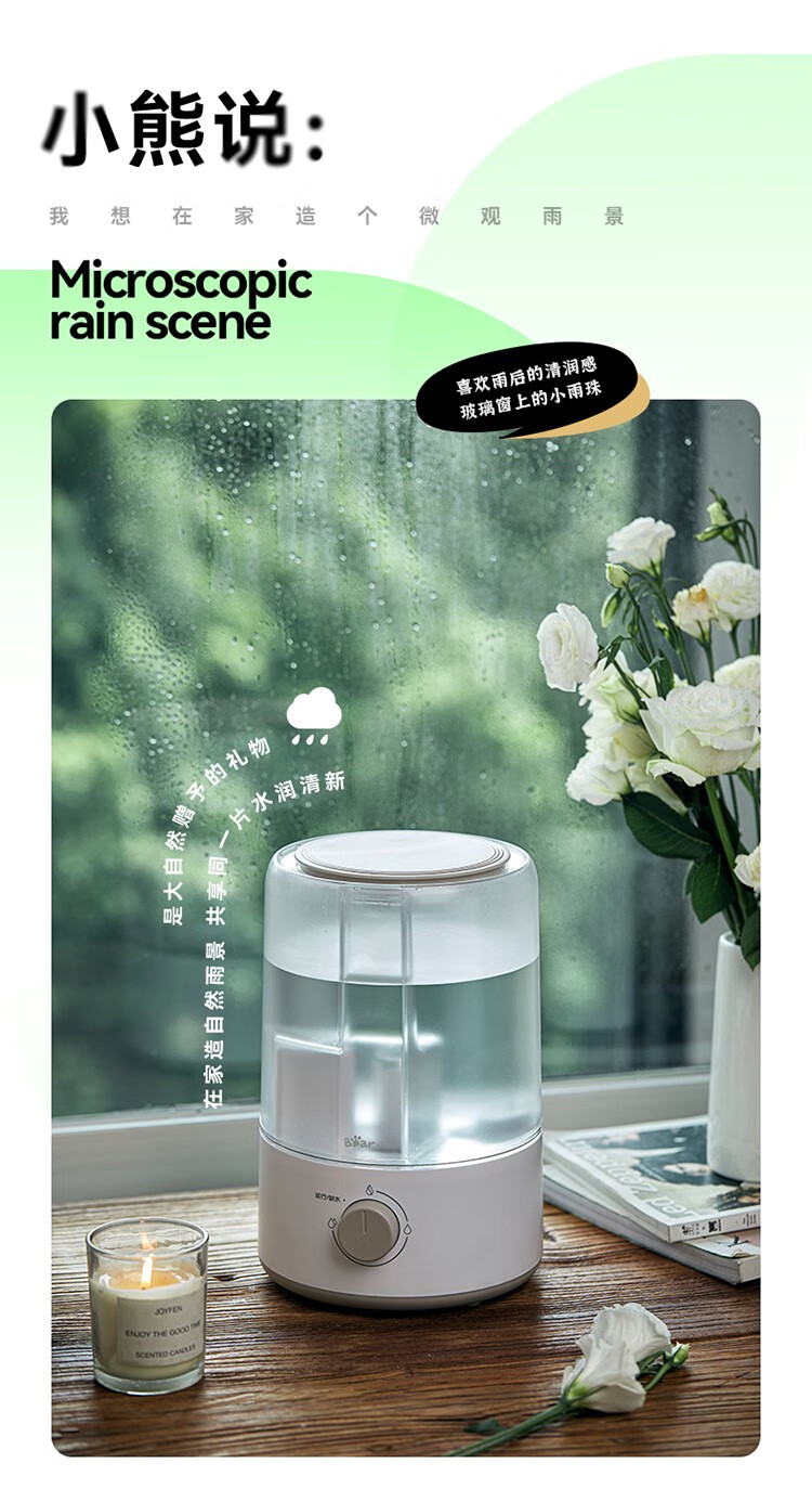 小熊(Bear) 加湿器家用空气加湿机卧室3L迷你增湿机桌面办公加湿器低噪大雾量JSQ-D30W1 【JSQ-D30W1】更润更健康