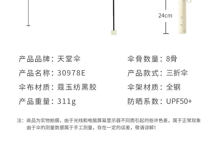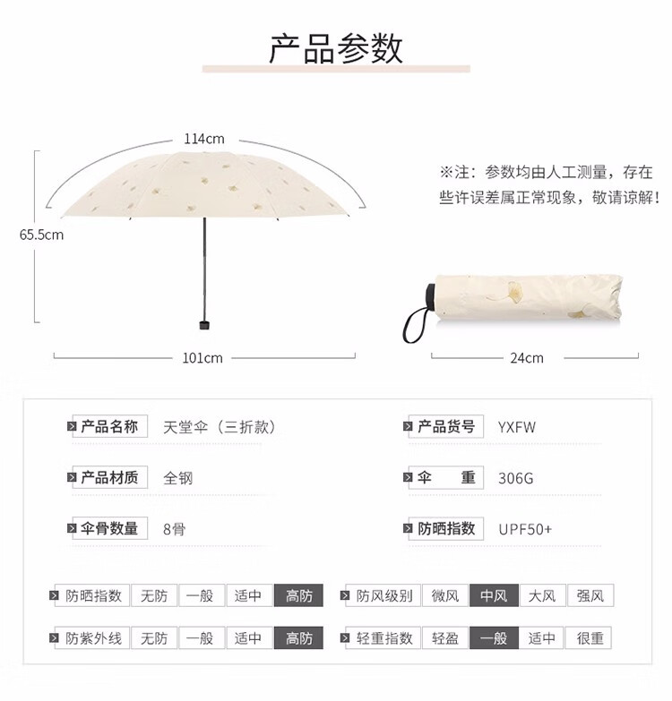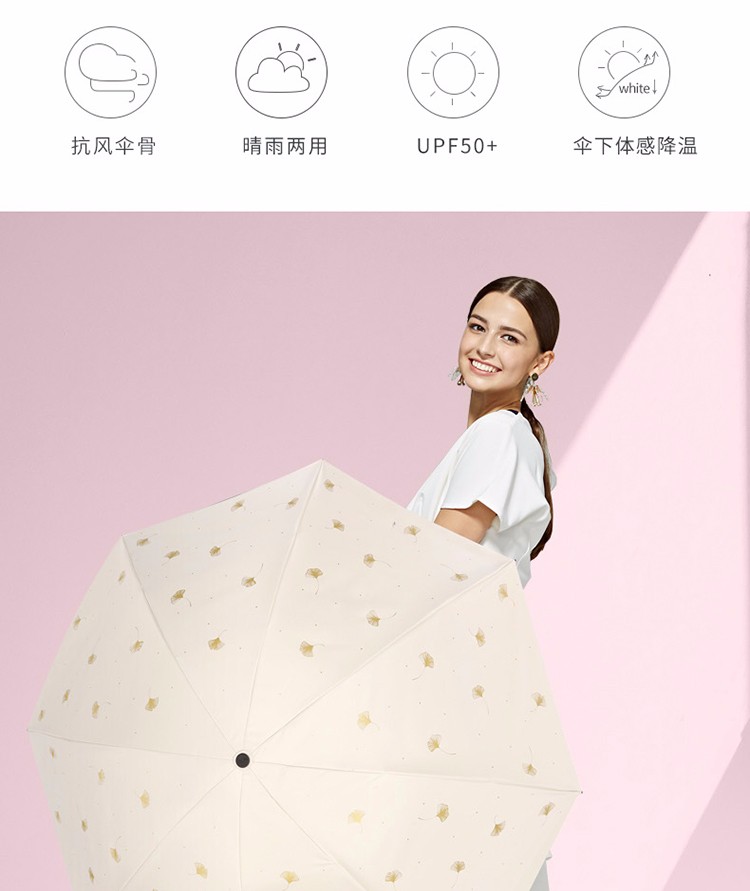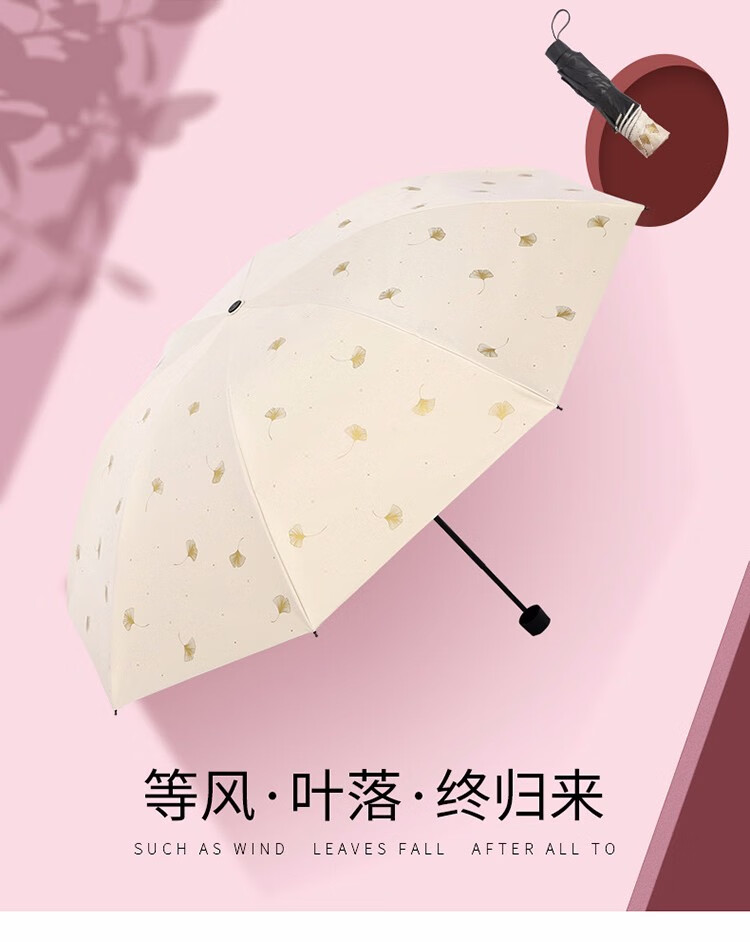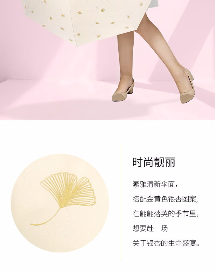 天堂伞太阳伞防晒防紫外线遮阳伞户外伞晴雨两用便携雨伞男女 银杏飞舞-甘酪白
