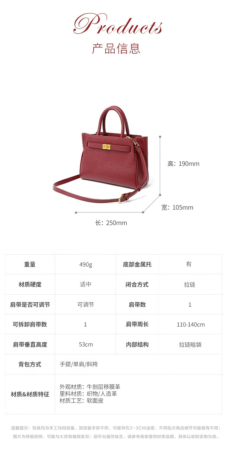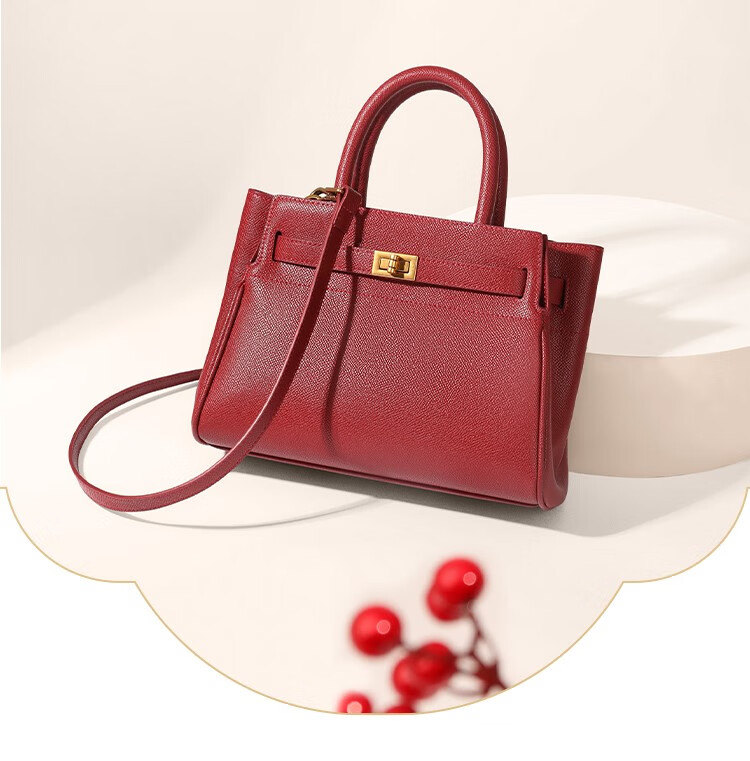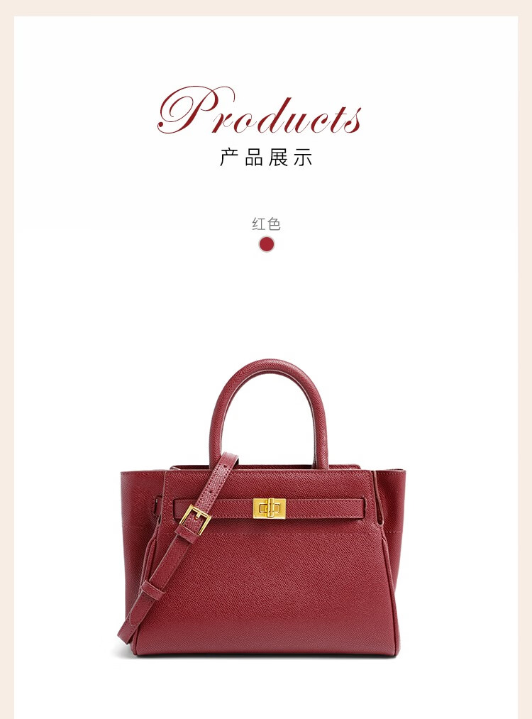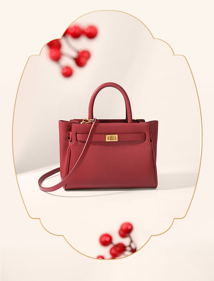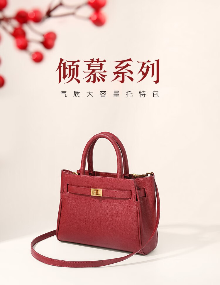 百丽大容量托特包商场同款婚包送妈妈金属扣手提女包X5348CX0 红色 F