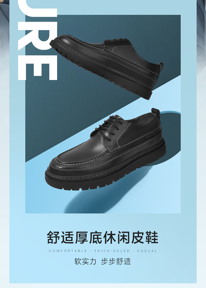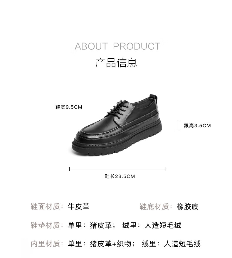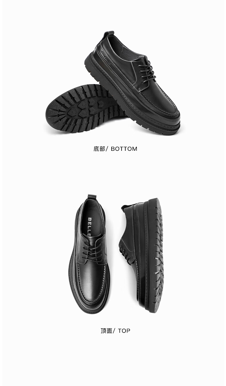百丽牛皮商务休闲皮鞋男百搭马丁鞋子橡胶底86181CM0 黑 42