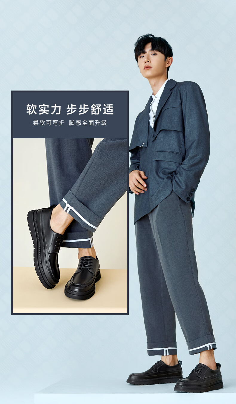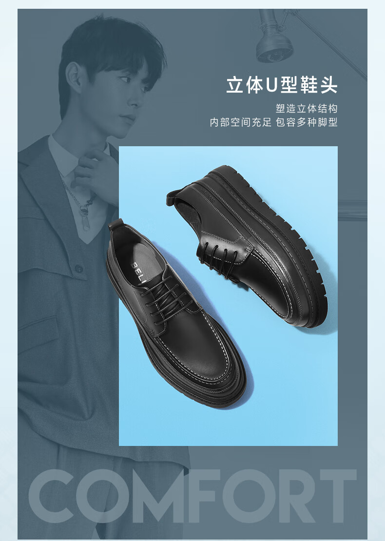 百丽男鞋商场同款正装潮流商务休闲皮鞋6YQ01CM0 黑色 44
