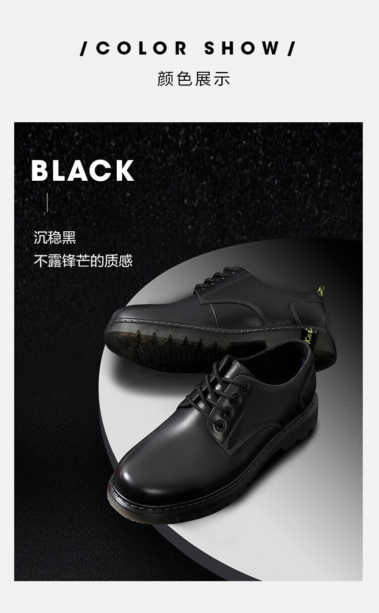 百丽牛皮商务休闲皮鞋男百搭马丁鞋子橡胶底86181CM0 黑 42