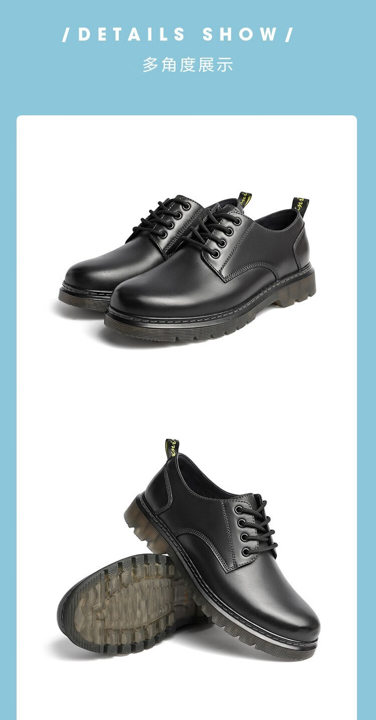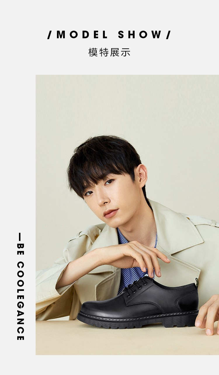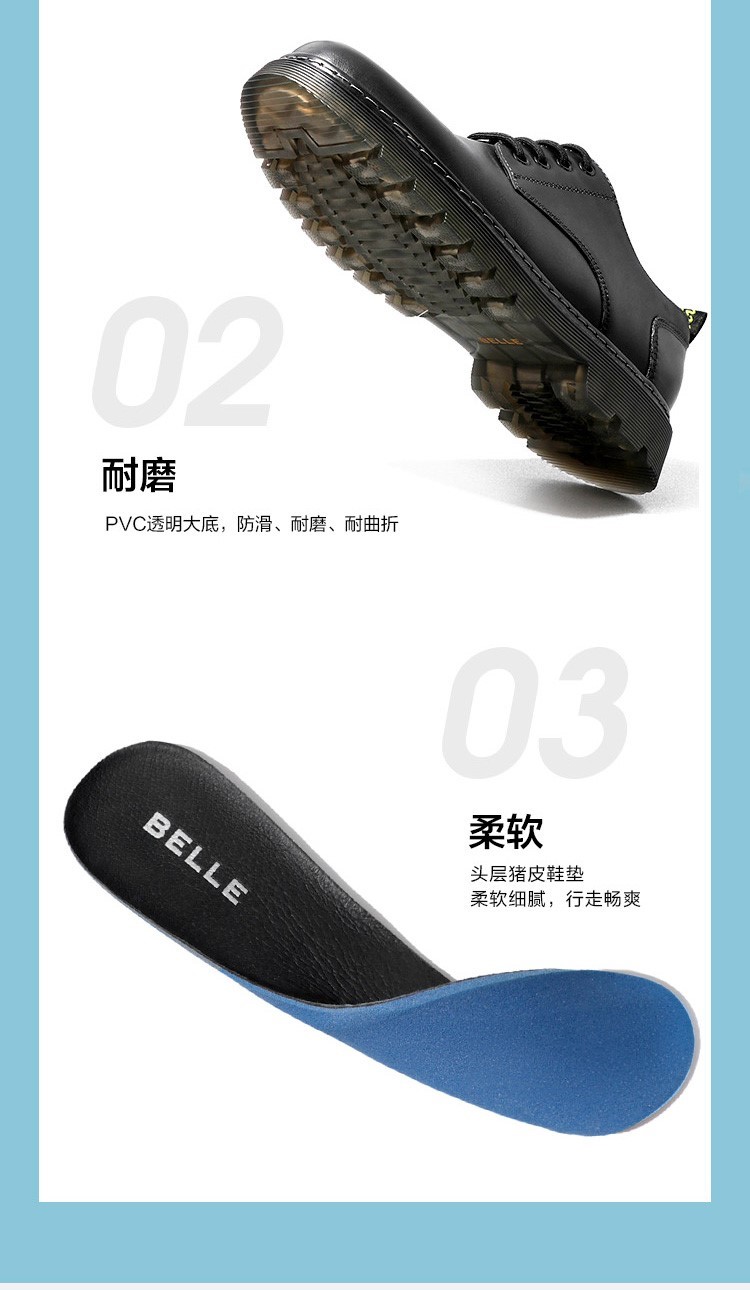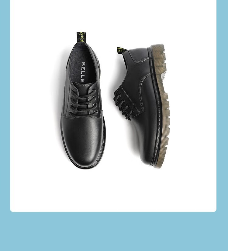 百丽牛皮商务休闲皮鞋男百搭马丁...
