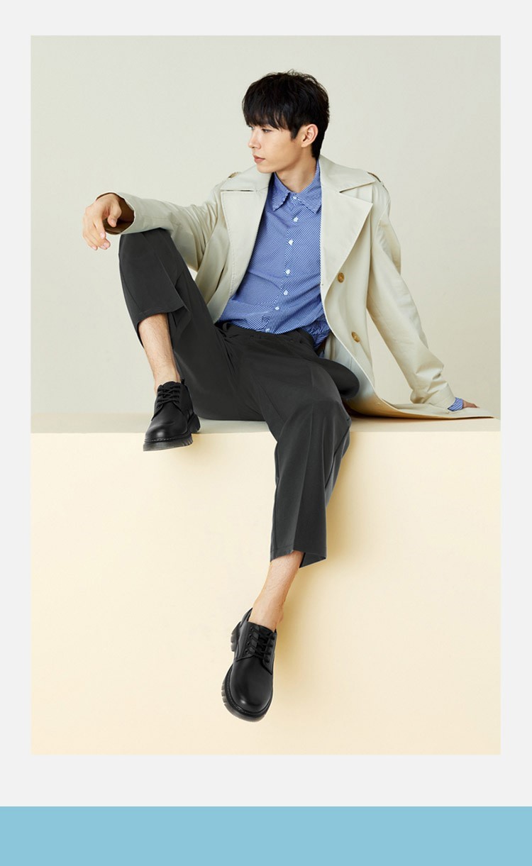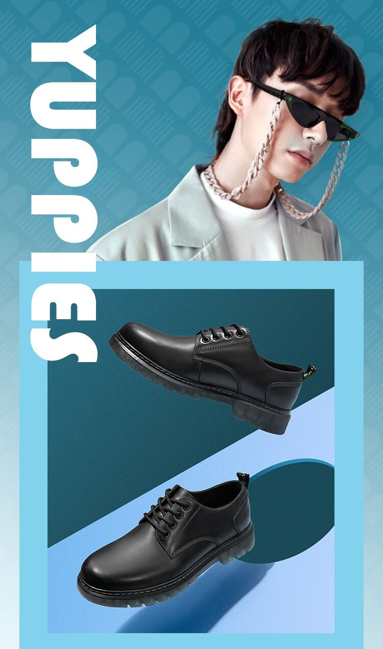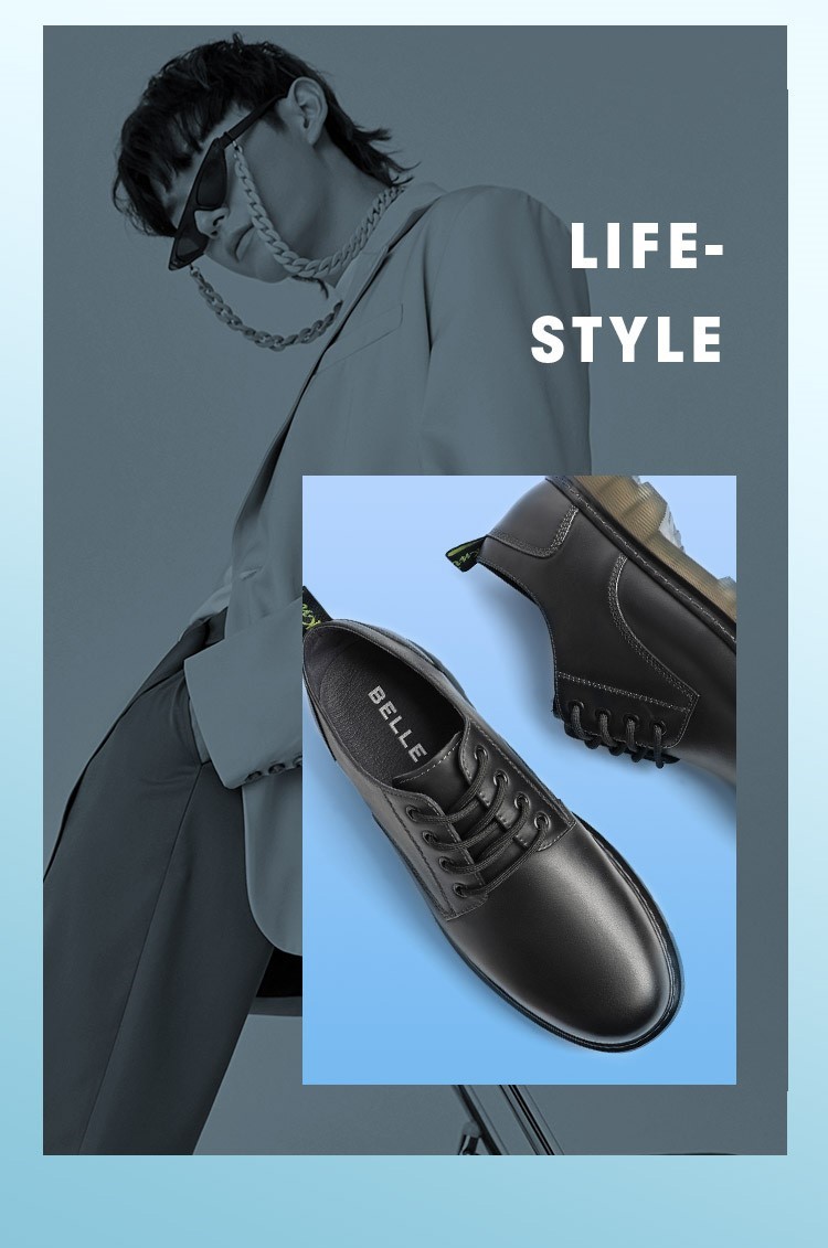 百丽牛皮商务休闲皮鞋男百搭马丁...