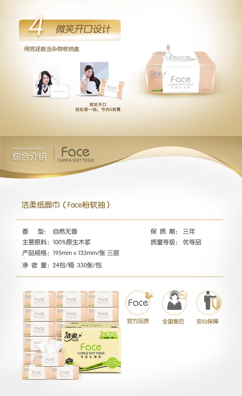 洁柔抽纸 柔韧330张面巾纸*24包 粉Face (M号 可湿水3层110抽每包)