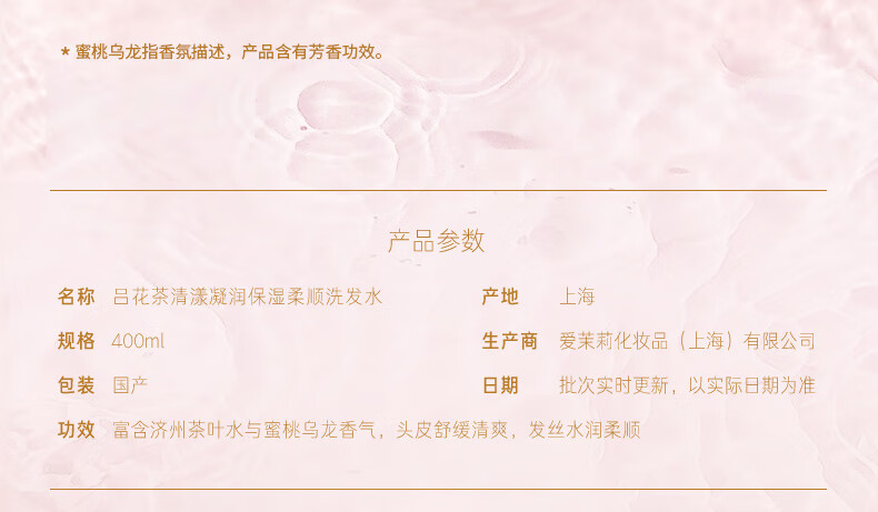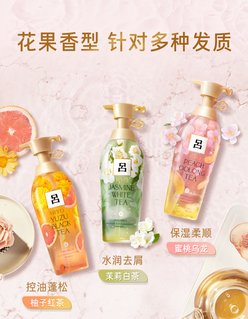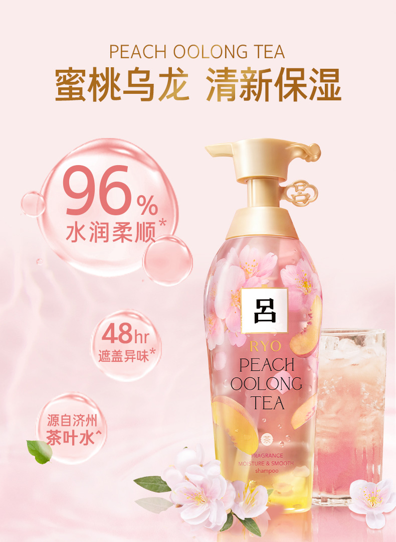 吕Ryo 蜜桃乌龙洗发水改善毛躁水润柔顺持久留香洗发膏400ml