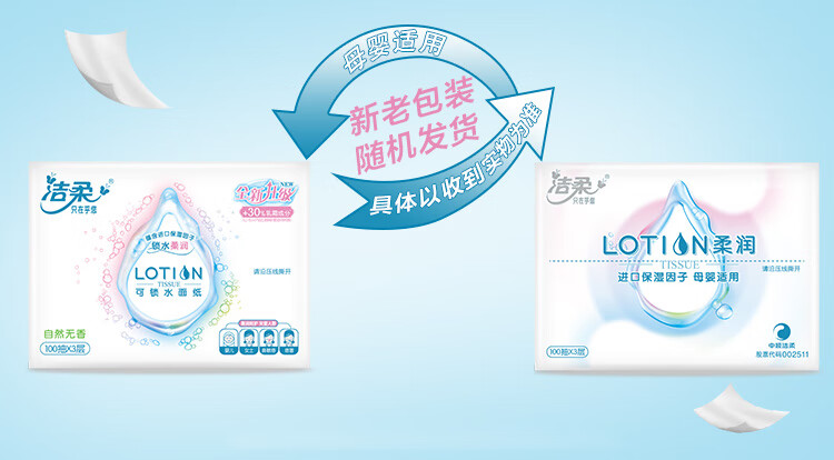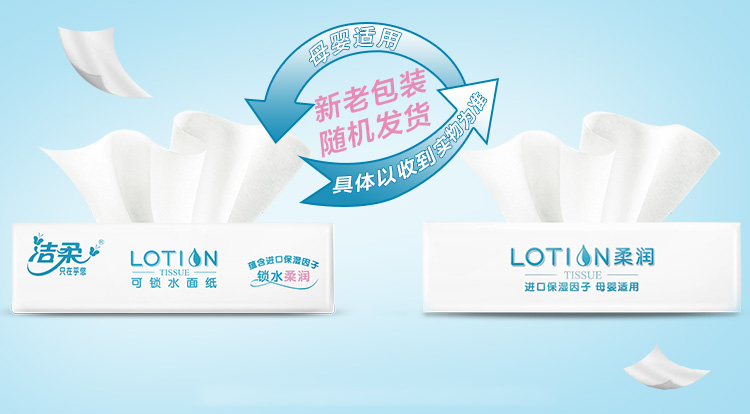 洁柔抽纸 Lotion乳霜纸3层100抽面巾纸*4包 母婴纸 富含保湿因子