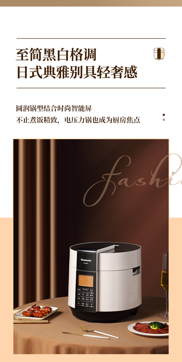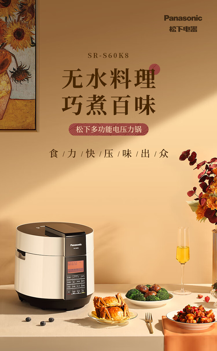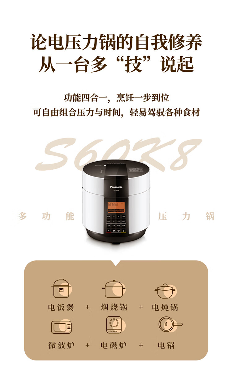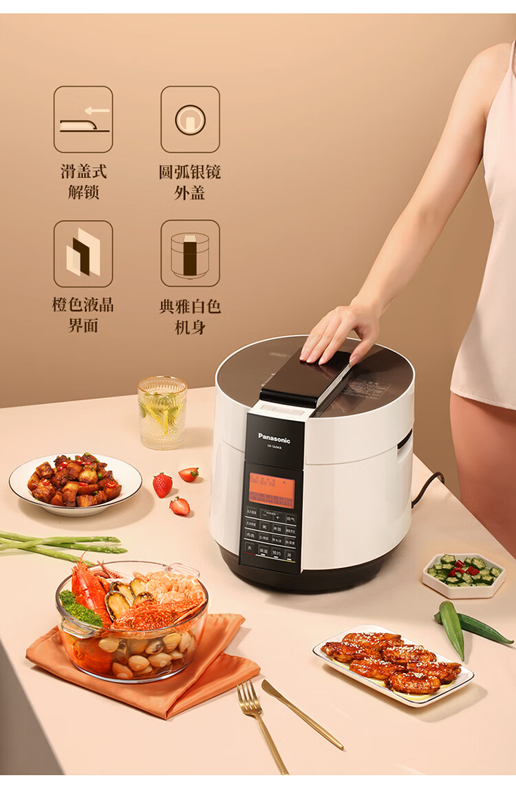 松下(Panasonic)6L电压力锅 智能高压锅 电压锅 多功能能压力煲 电饭锅 智能预约 SR-S60K8