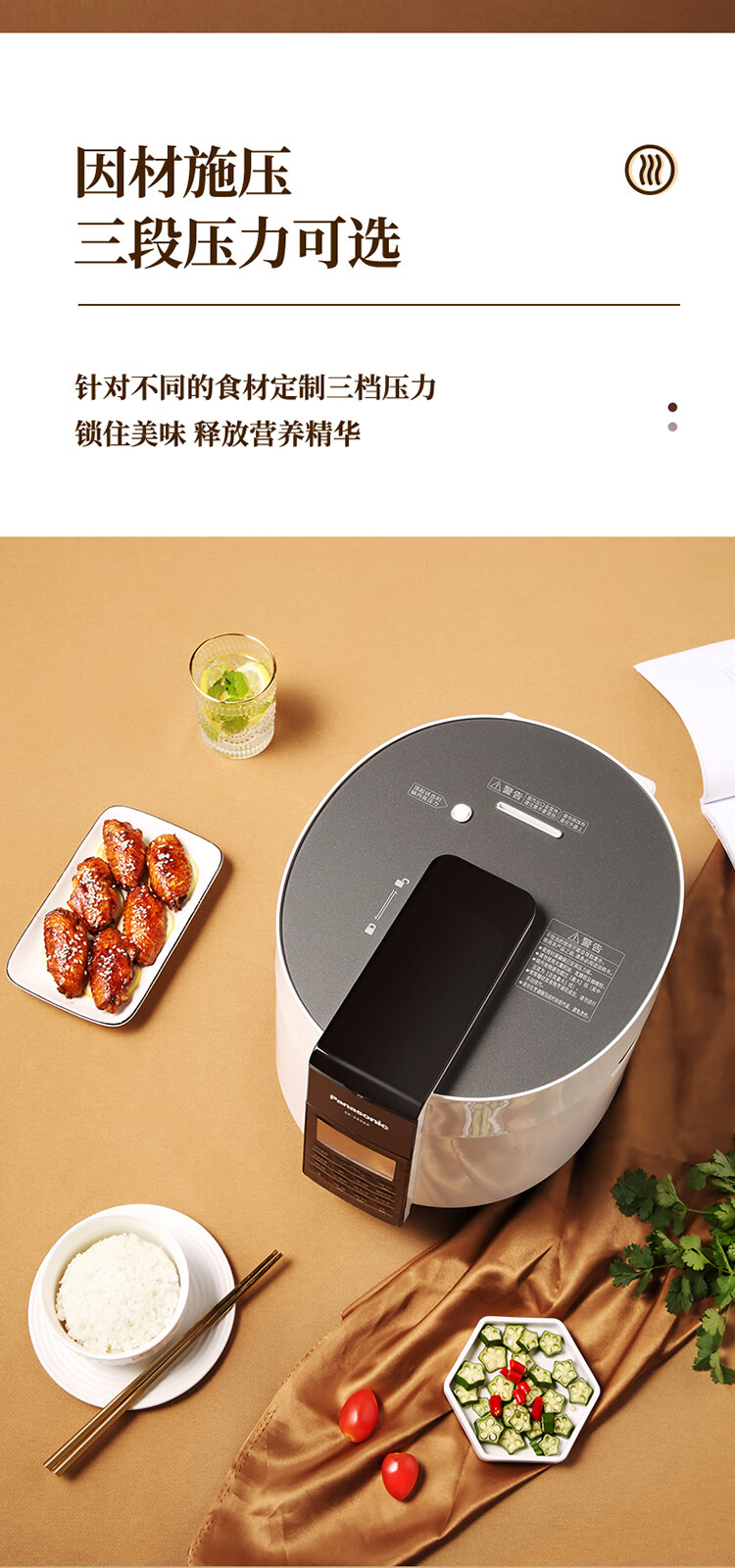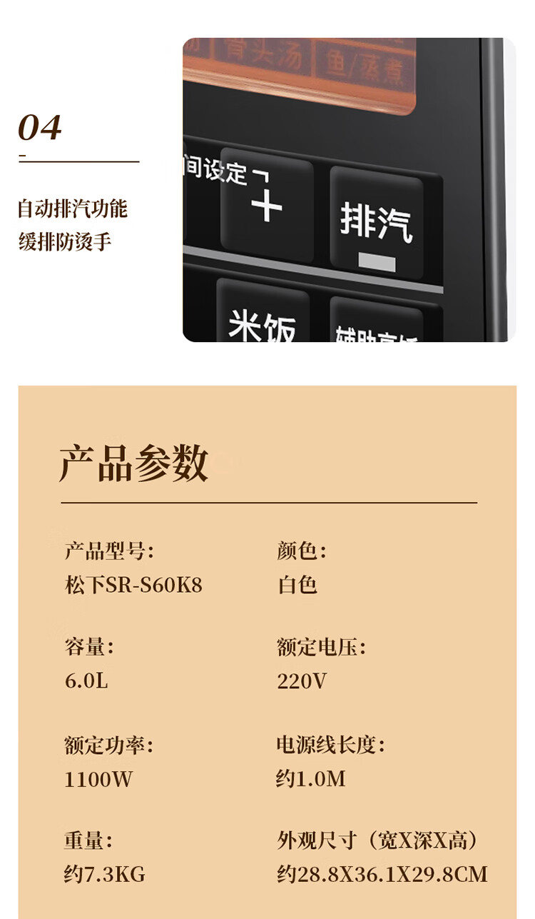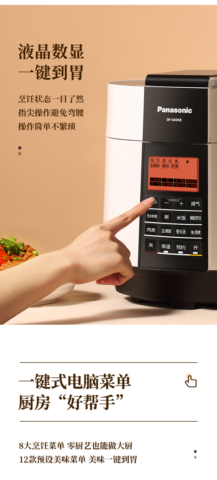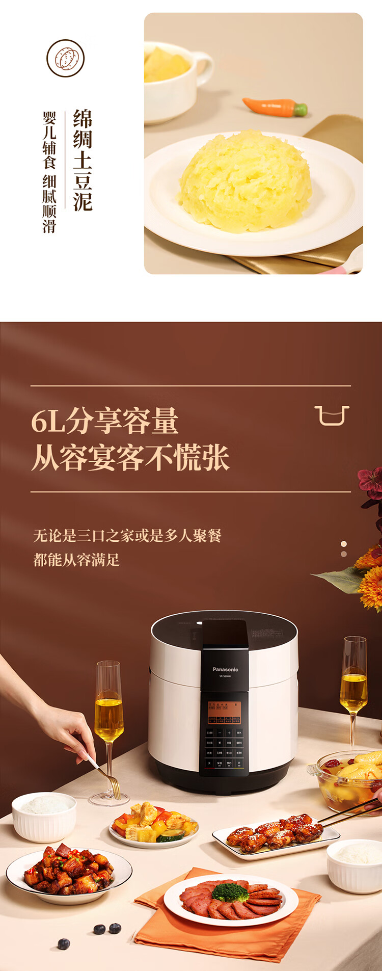 松下(Panasonic)6L电压力锅 智能高压锅 电压锅 多功能能压力煲 电饭锅 智能预约 SR-S60K8