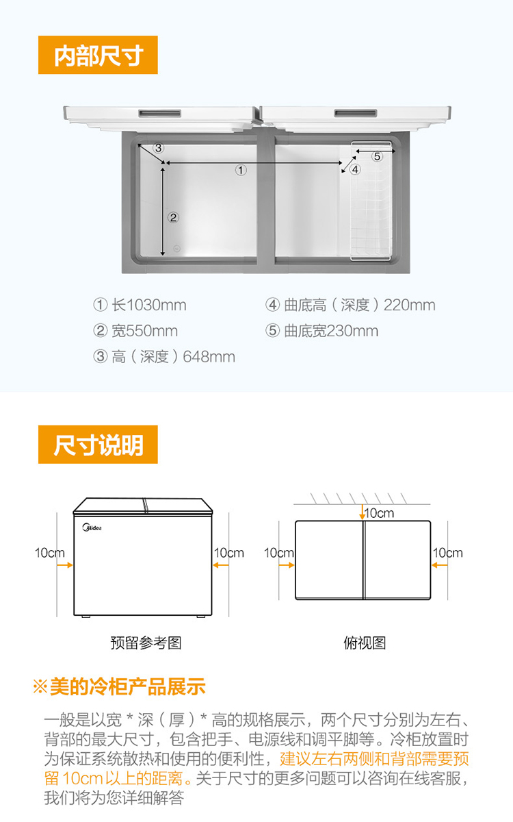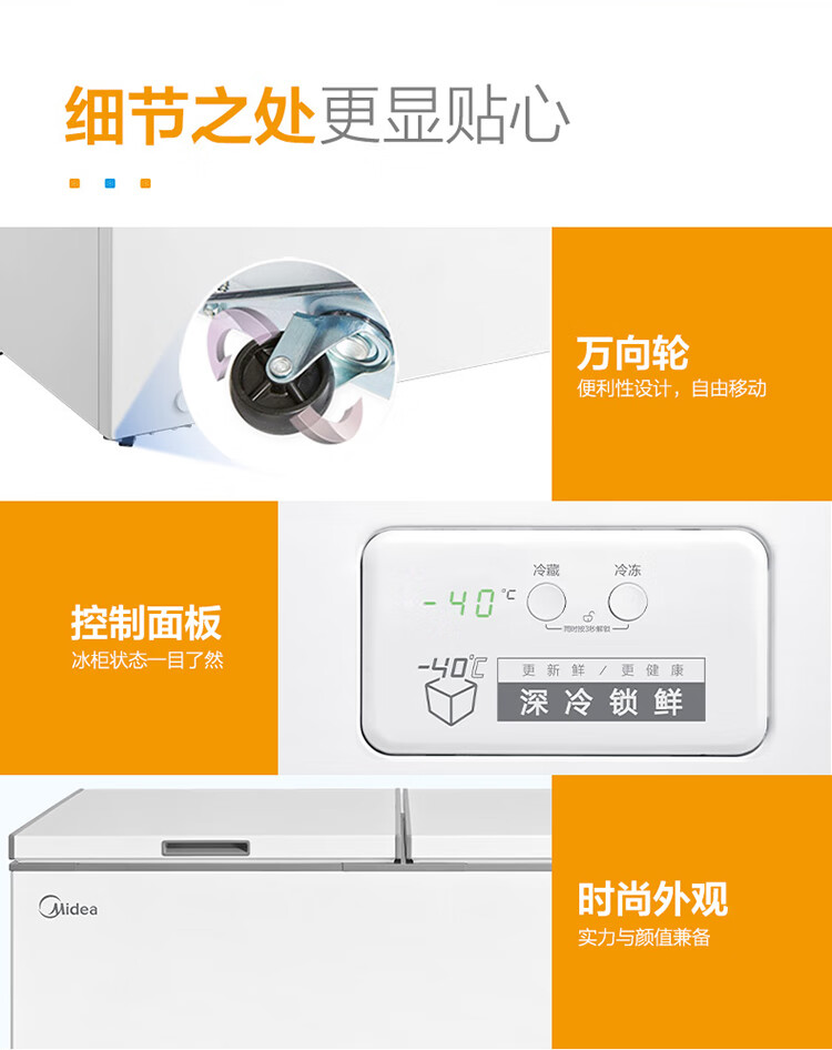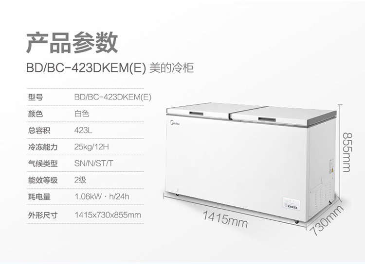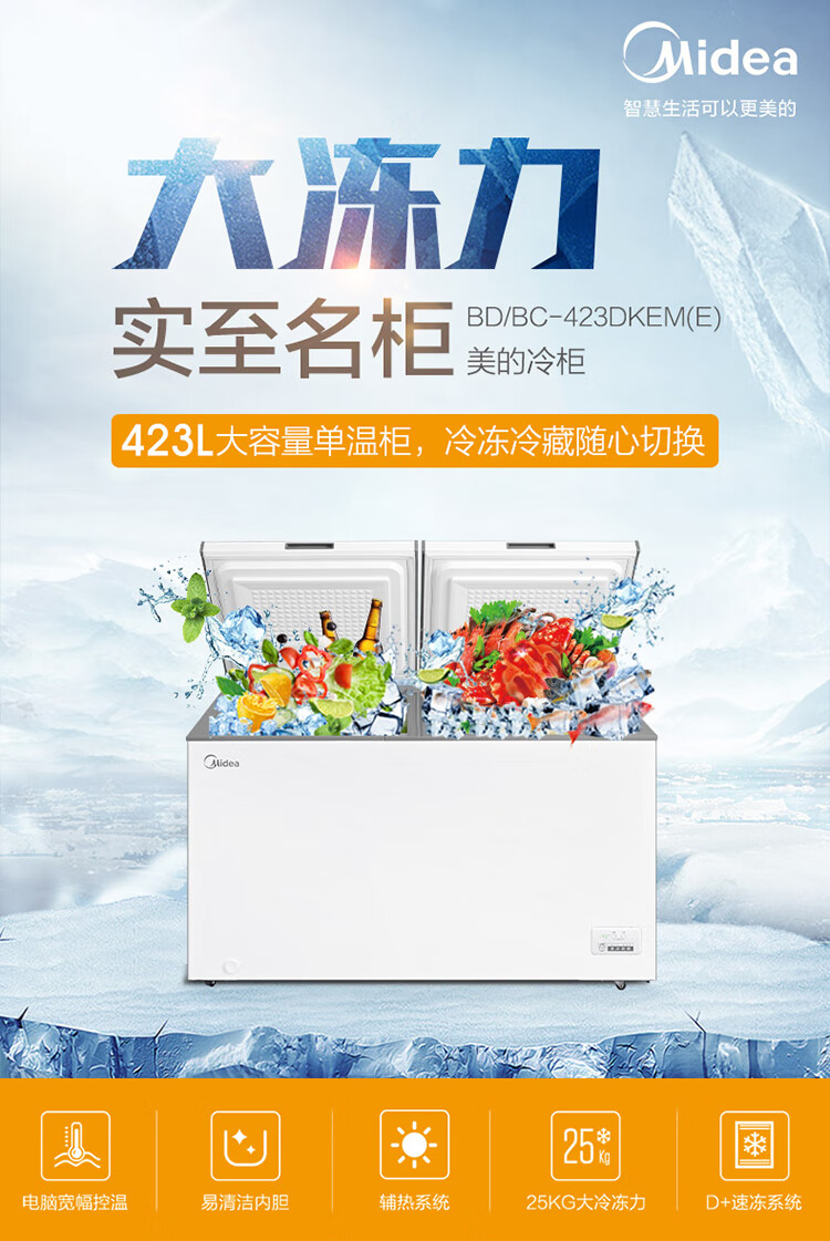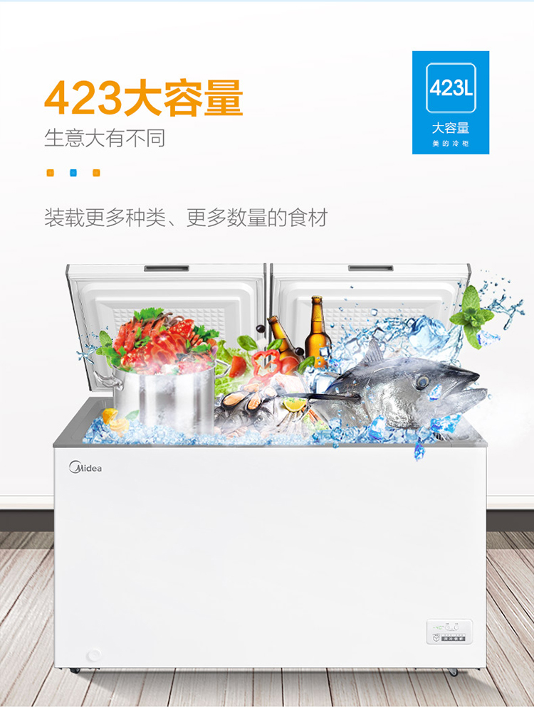 美的(Midea)423升 五面制冷商用大容积单温囤货冰柜 电子控温冻藏转换卧式冰箱 BD/BC-423DKEM(E) 以旧换新