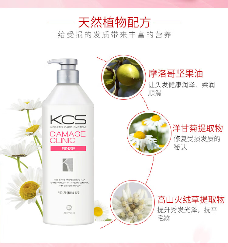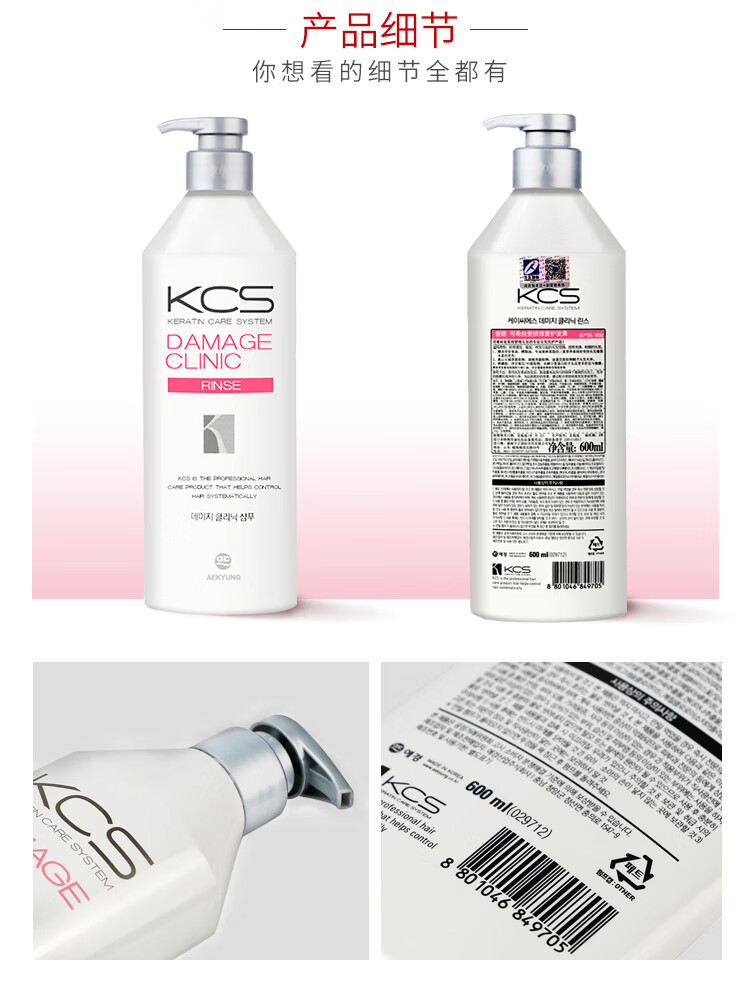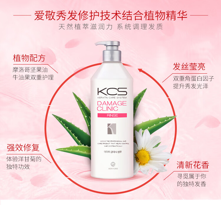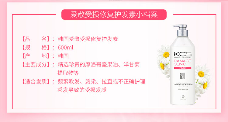 爱敬KCS修护受损润发乳600ml(护发素发膜焗油膏 柔顺亮泽 男女士)