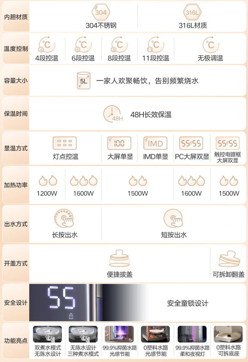 美的(Midea)电热水瓶热水壶电水壶304不锈钢净甜水壶热水瓶多段控温保温恒温开水壶电水壶烧水壶Colour201