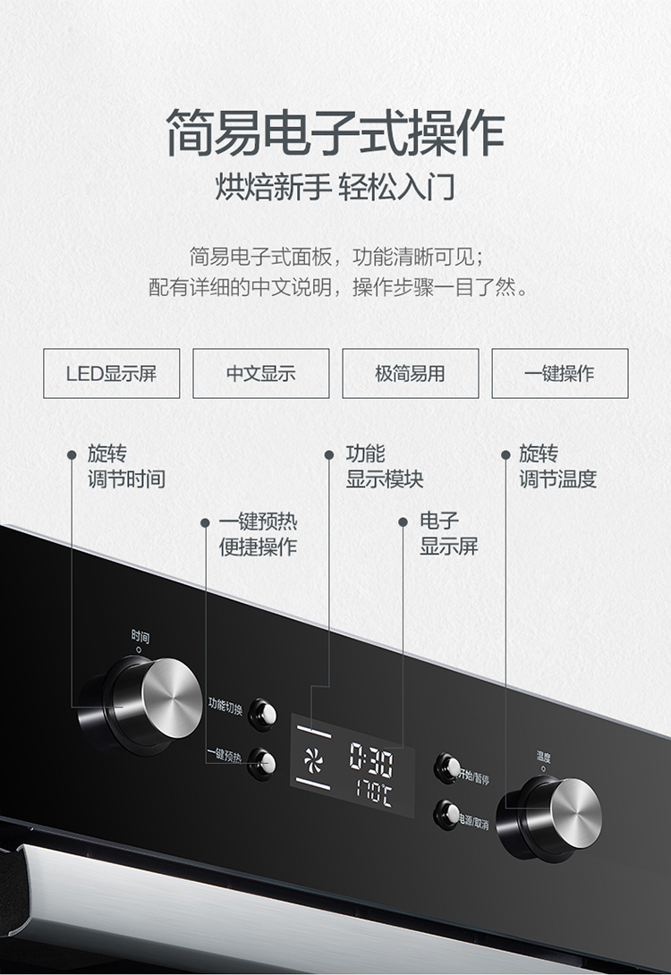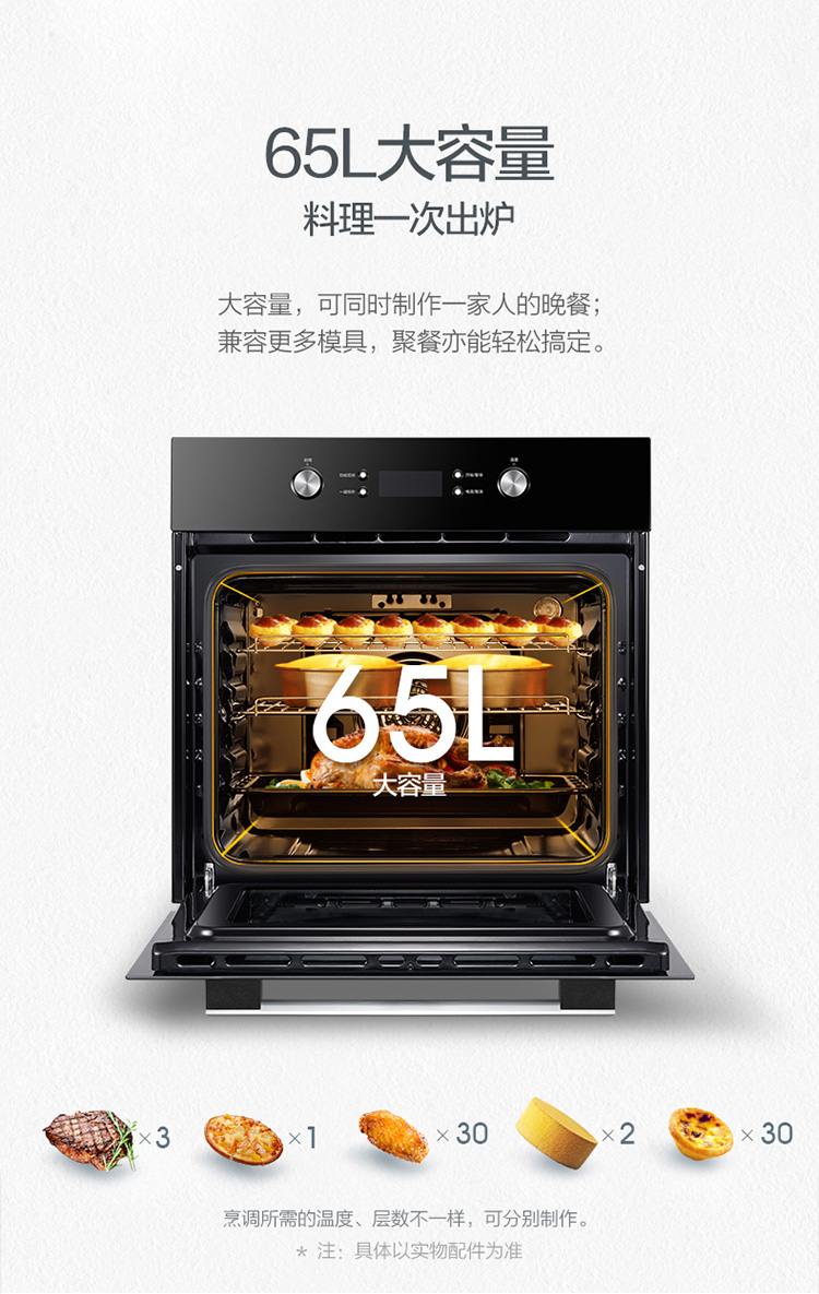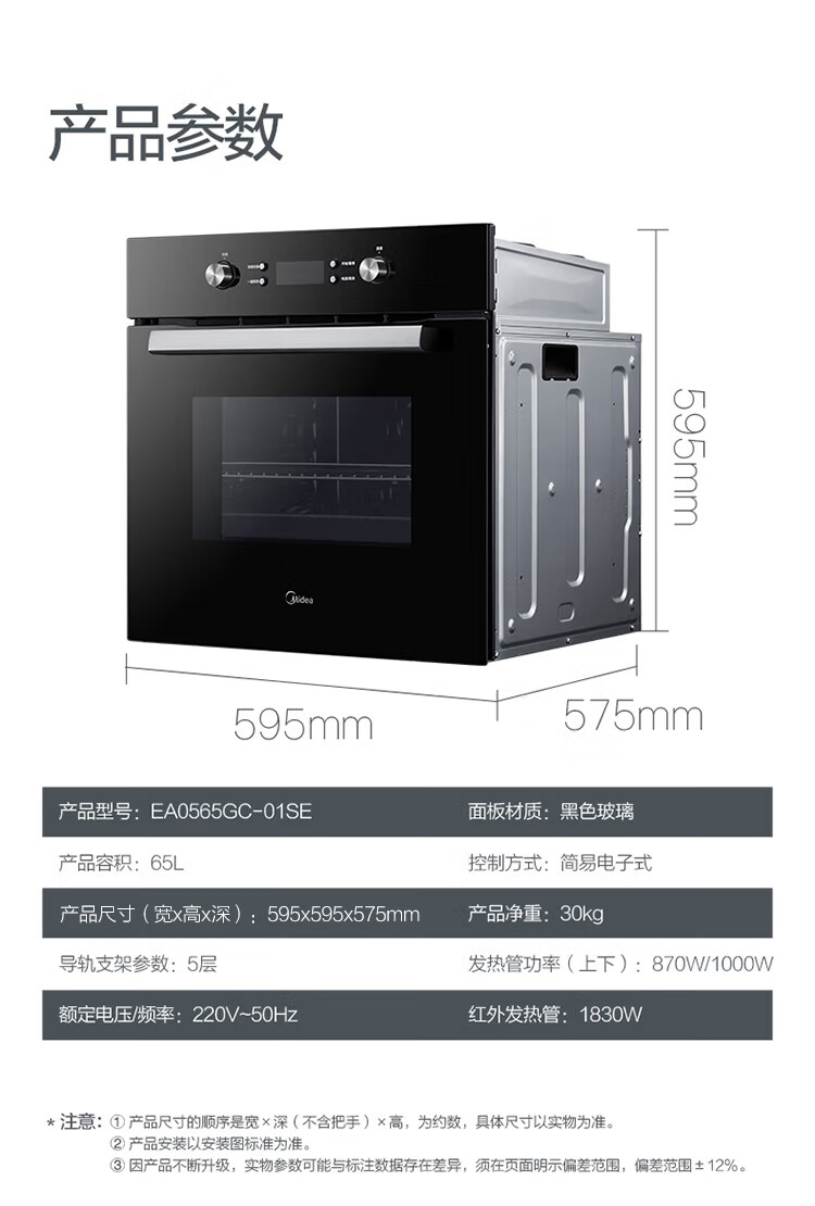 美的 (Midea) 大烤箱嵌入式电烤箱 一键预热 65L 家用大容量专业烤箱 小嘿EA0565GC-01SE