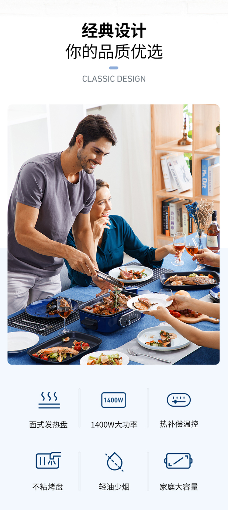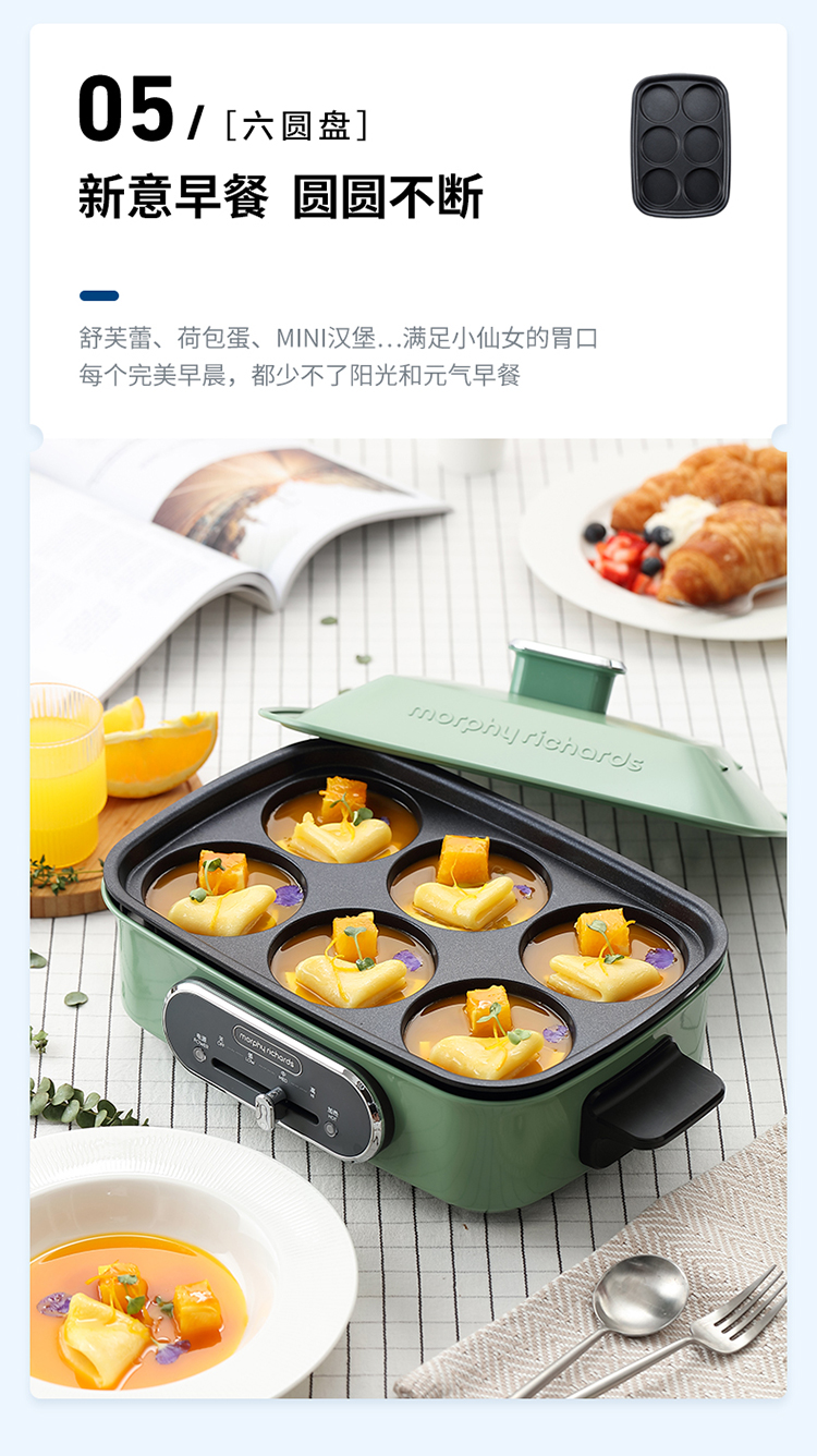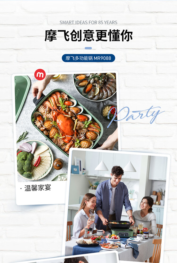 摩飞电器(Morphyrichards)多功能锅 家用多用途锅 电火锅电煮锅电蒸锅电热锅 2.5升 火锅锅 MR9088 地中海蓝