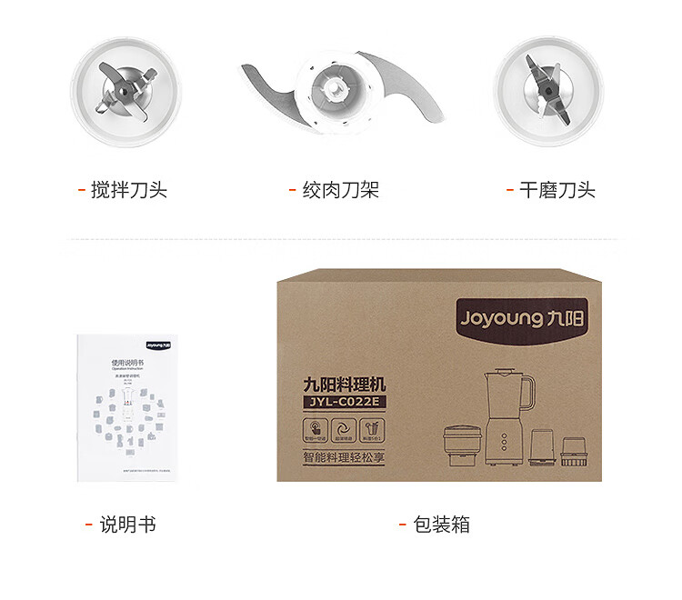 九阳(Joyoung)料理机多功能四杯榨汁机研磨绞肉机婴儿辅食机搅拌机果汁机榨汁杯豆浆JYL-C022E